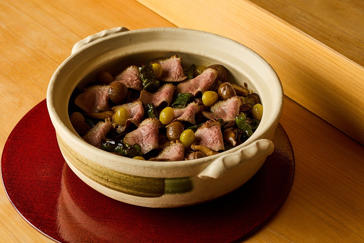 冬季時山間所飼養的野味雞鴨,向來是君王御膳中的珍品。因此,本季食事特別選用了厚實肥嫩的宜蘭豪野鴨,搭配鬆軟栗子、彈糯銀杏、爽脆野菇,一同將冬天的香氣炊煮入鍋,成就一碗溫潤厚實且口感層疊的季節釜飯。