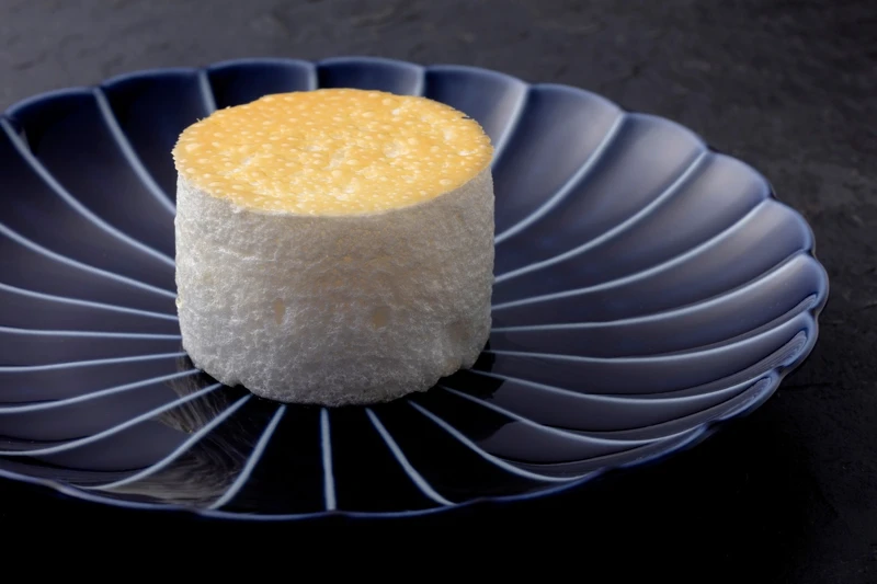 靈感來自法國經典甜點「漂浮島」,蛋白霜漂浮於香草蛋奶醬之上,是 Chef Piège 對童年與奶奶手作甜點的溫柔記憶。他以現代手法重塑這份懷舊滋味,將蛋白霜以低溫烘焙成蓬鬆外殼,內裡包裹香草籽醬,並覆以細緻焦糖脆片。敲開表層,香草醬緩緩流出,如小島漂浮在香草湖中,甜香輕盈、入口即化,是他以記憶詩意化為經典的代表作之一。