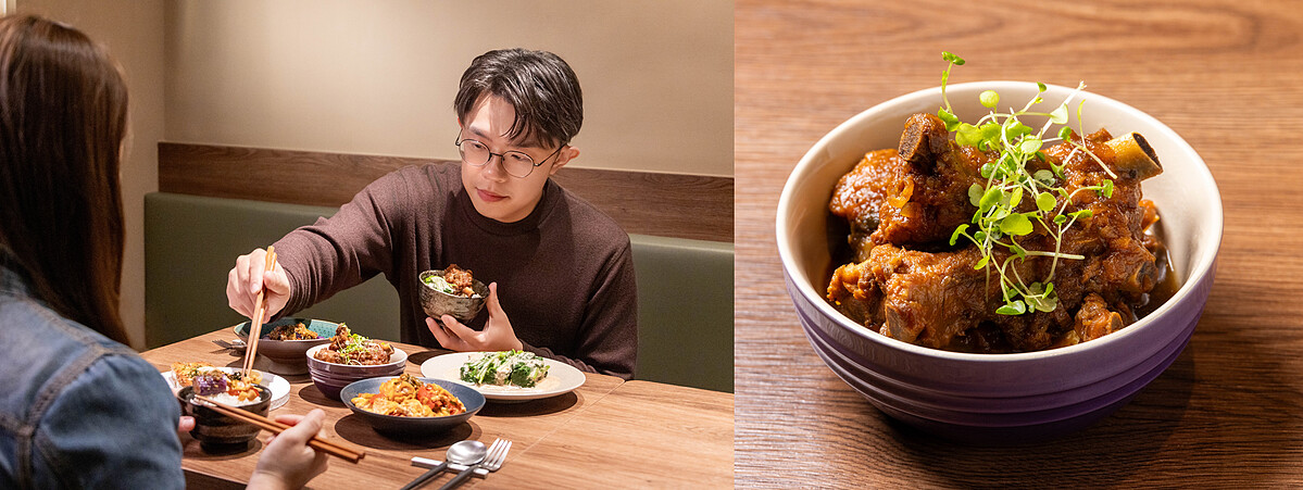 在他用法式手法融入台灣味的幾道料理中,「燉洋蔥排骨」這道菜是他從小吃到大的家常味,也是媽媽的拿手菜,做法很簡單又下飯,陳主廚經常做給家人朋友吃,看著大家開心享用的樣子,那份將自身喜歡的東西分享出去的滿足感是難以言喻的。