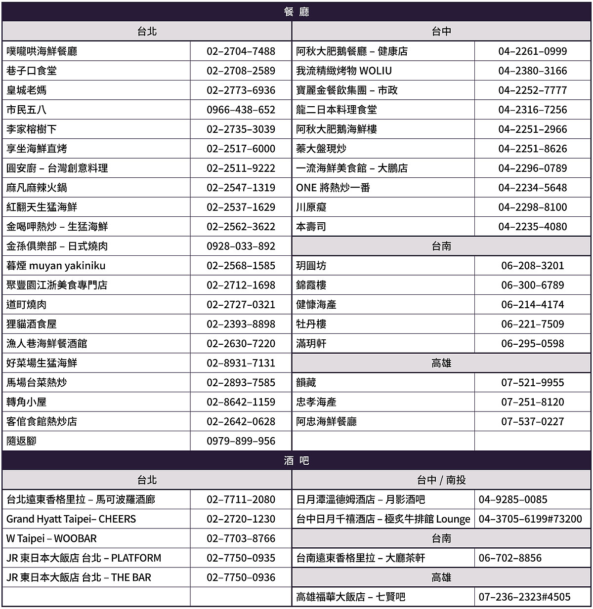 全台39家熱門餐廳與9間知名酒吧清單: