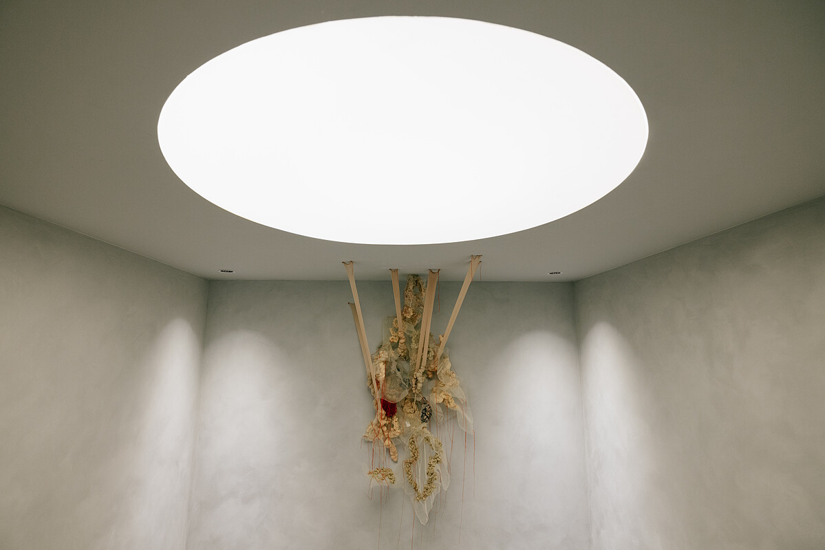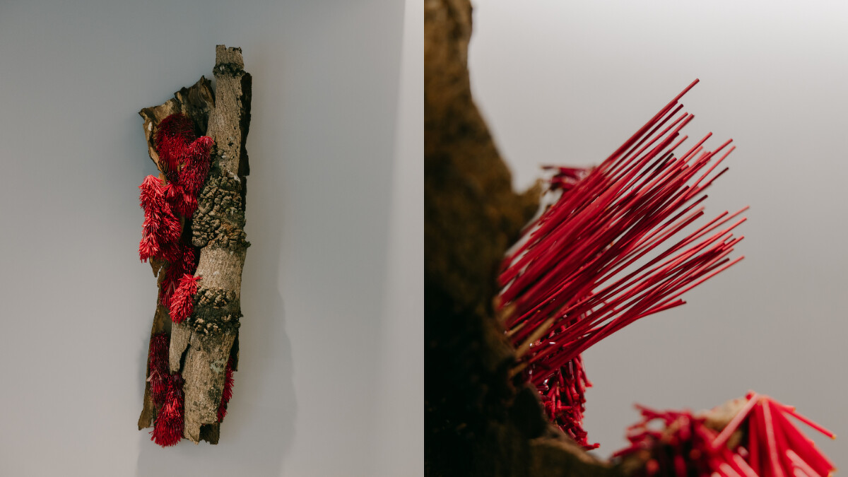 進門右側,映入眼簾的是由 LANDHILLS 植物藝術家廖浩哲創作的空間裝置。「紅色香腳」與「紅繩」在民間信仰中象徵著連結與祝福,封存在凝膠般的異材質中,展現出傳統與當代在此相互觀照的意象。這些融入店內環境的藝術作品,未來將隨著不同企劃持續被覆寫,讓這座空間保持著不息的生命力。