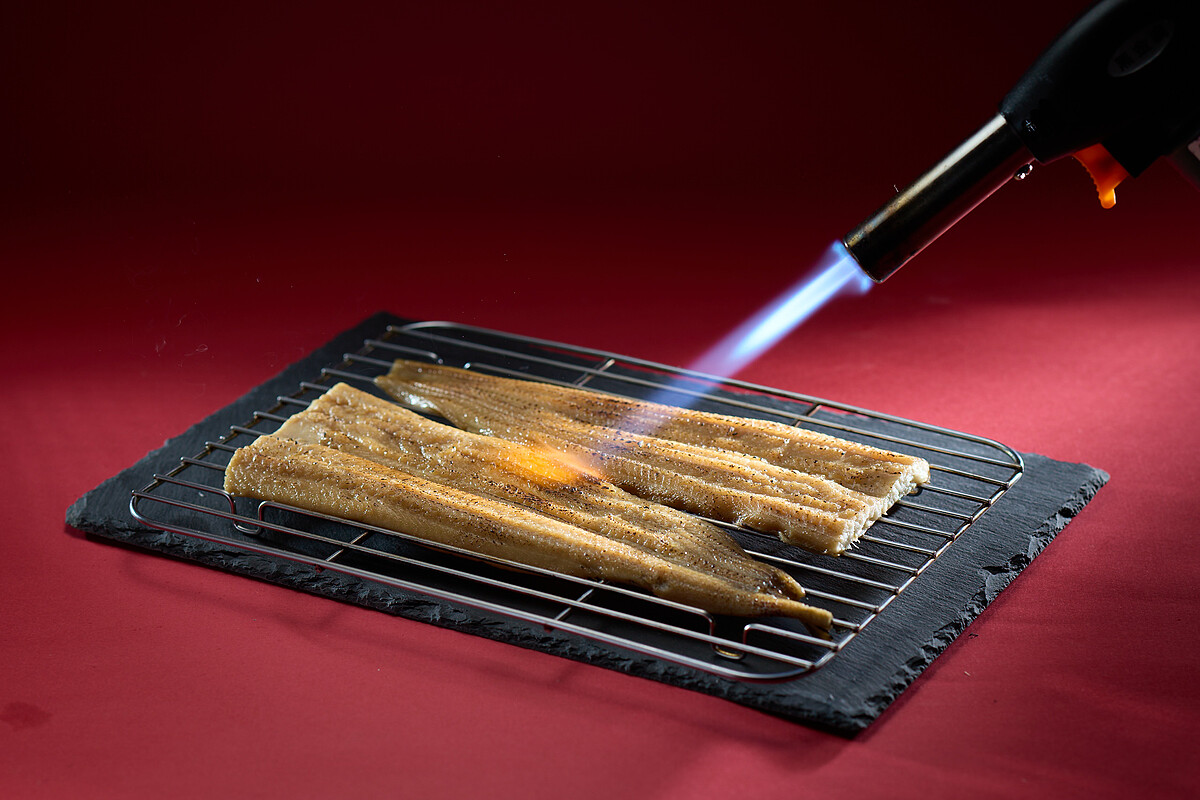 嚴選青森縣產野生金目鯛,店內現切炙燒魚皮,香氣四溢、甘甜回韻。
