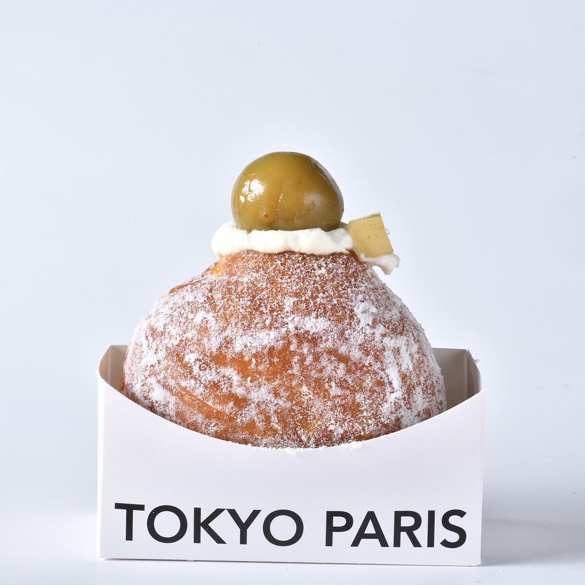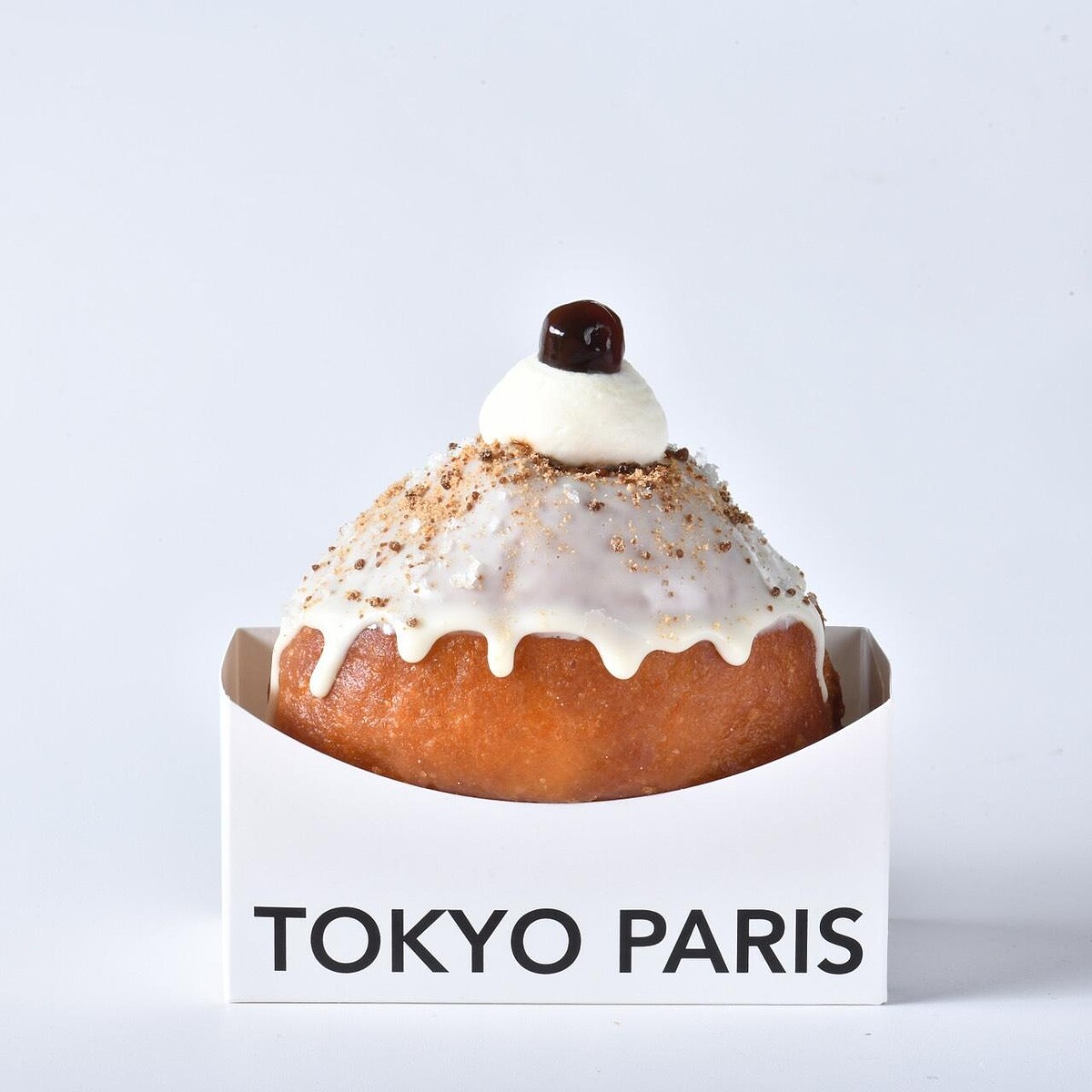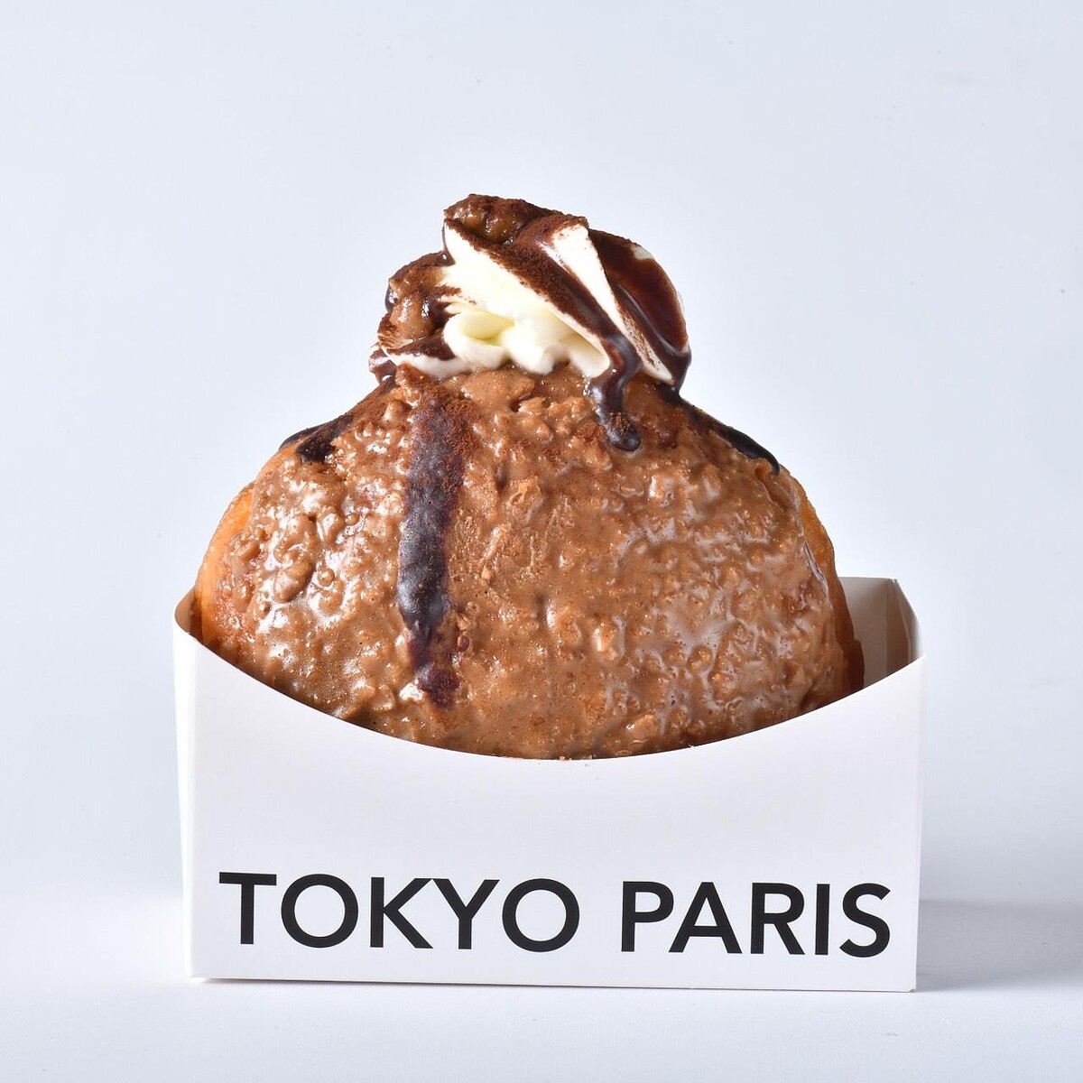 這次的主角「富士山生泡芙」原型來自日本近期爆紅的排隊生泡芙,由東京巴黎甜點日本師傅指導製程後,再依台灣市場重新調整,變成一顆結合三種甜點的富士山造型泡芙。外層是酥脆泡芙殼,裡面先吃得到帶杏仁香氣的費南雪,最中心則灌入以法國鮮奶油與比利時發酵奶油製成的布蕾內餡,口感從外到內很有變化。造型上刻意做出山型輪廓,山頂覆蓋白巧克力,再撒上鹽之花,看起來就像一座迷你富士山。