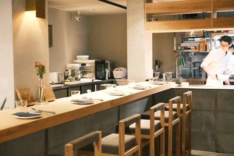 除了料理之外,zài cuisine也把再生放進器物與空間裡,像是餐桌上的器皿、廚房圍裙多來自以永續與再製為核心的PUEBCO,保留使用痕跡與材質本身的時間感,未漂白的紙漿餐巾也讓細節回到自然的質地。空間則是由「一日一土」設計,以實木、不鏽鋼、黃銅、水泥與黃土牆為主要材料,保留紋理與使用後的變化。這些痕跡不是缺陷,而是時間留下來的樣子,就如同zài cuisine的料理一樣,小編真心推薦美食控趁著空閒來這裡好好享受一趟身心靈的美食之旅。