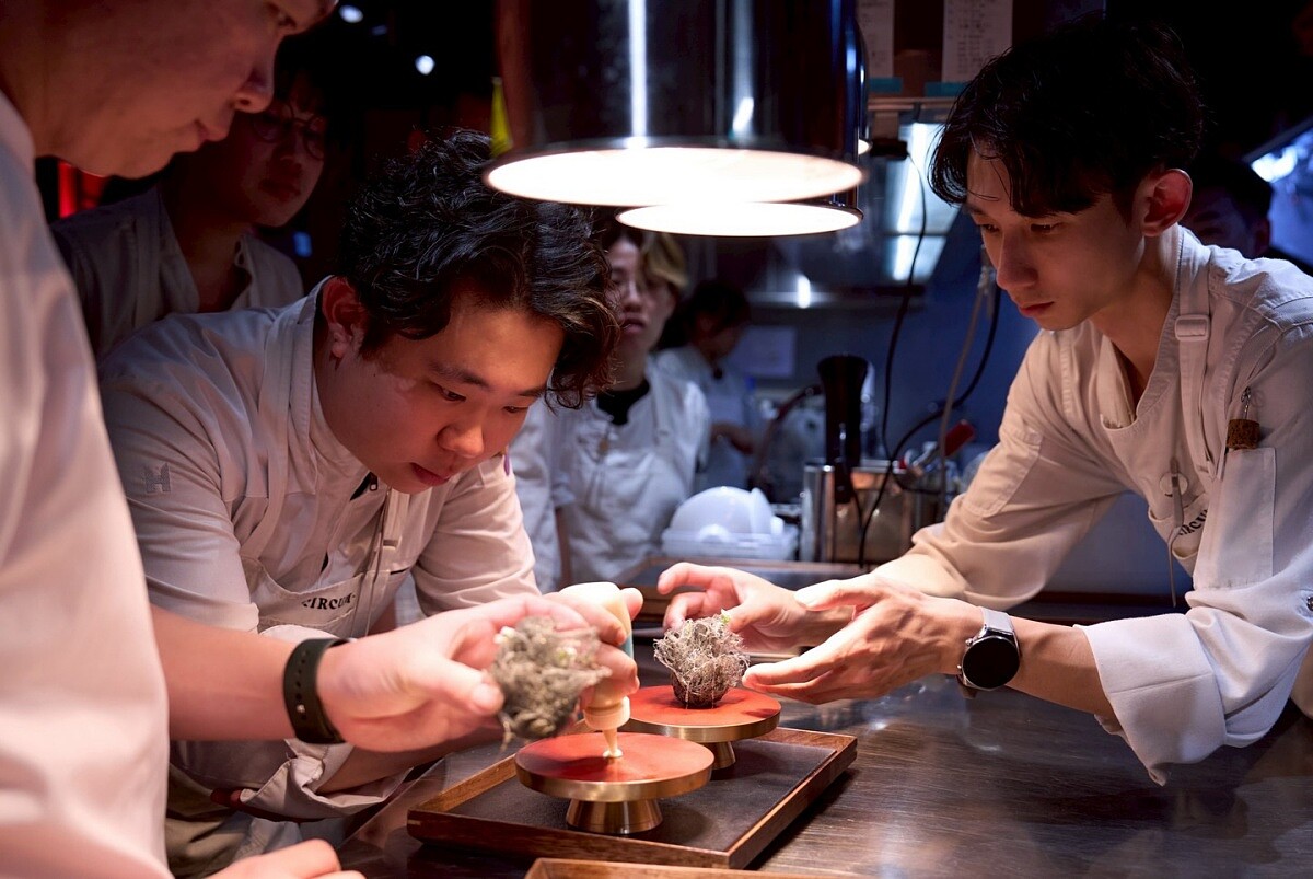位在臺北晶華酒店地下二樓的「Circum-」,自2023年開幕以來便以獨特的「中式風味多重宇宙」吸引無數饕客。並以「迴游」為靈感打造空間,醒目的大航海時代船艦,加上橘紅色系與紅銅、石材與木材等質地貫穿其中,呼應了餐廳不以單一菜系作為歸屬,而是將整個不同地域的中式料理技法與風味脈絡拆解後重新編排的理念。