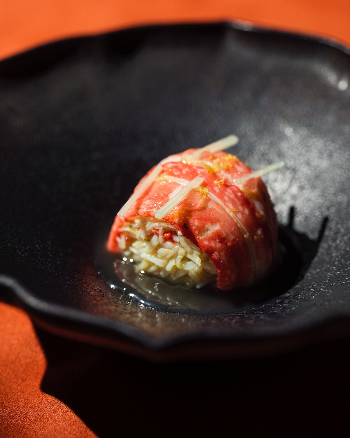 去年大受好評的「蟹宴」,今年重磅回歸。品「蟹」往往伴隨著繁瑣的剝殼過程,但在 「Circum-」的餐桌上「只動口、不動手」。團隊以手工拆解鱈場蟹、松葉蟹、大閘蟹、香箱蟹等七種嚴選蟹類,將蟹膏的脂香與蟹肉的鮮甜細緻提取。這不只是為了便利,更是為了讓賓客能完全專注於風味的起伏。