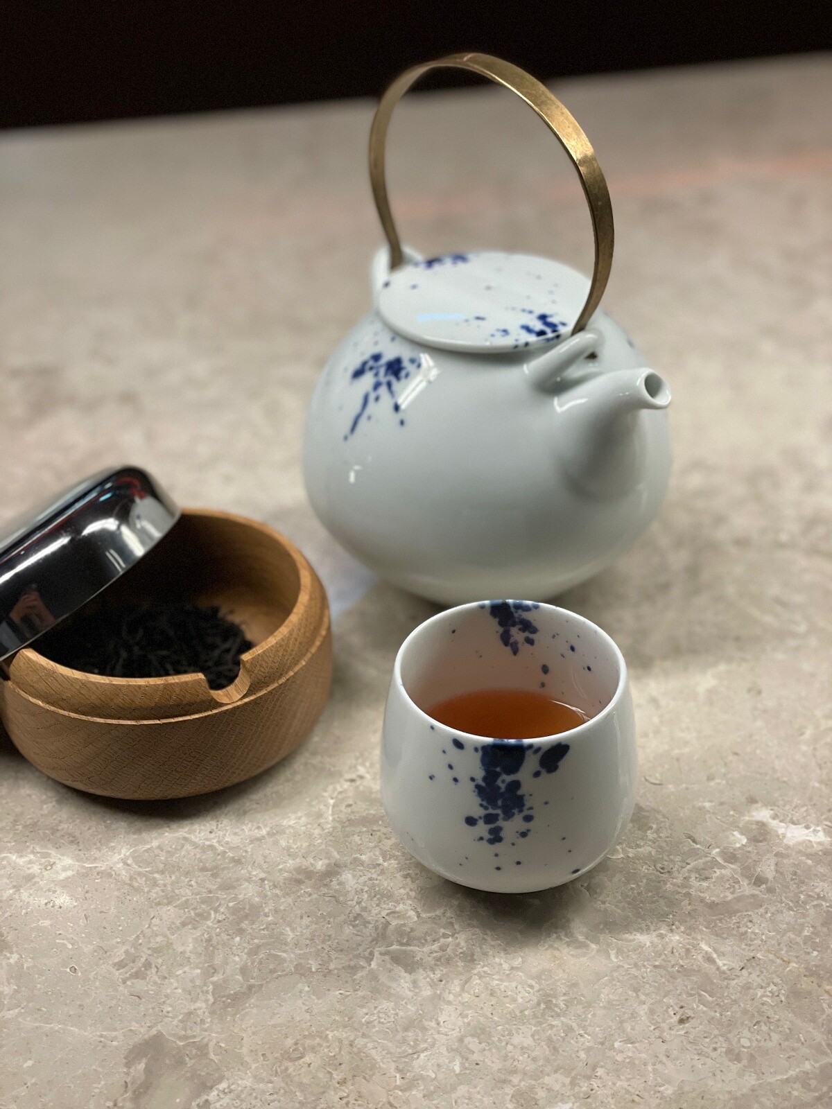 靈感來自香港糖水「紫米露」,以日月潭大葉紅茶為基底,與迎賓紅茶形成前後呼應。紫米經泡製、風乾後慢炒,帶出深沉穀物香氣,搭配阿里山手工薑糖的微甜辛香,口感溫潤厚實、餘韻悠長,作為甜點後的飲品,為整場餐敘留下溫暖而完整的收尾。