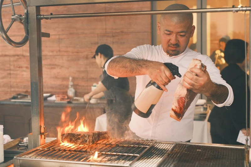 北投的冬夜霧氣貼著山林緩慢移動,2026年元月「三二行館 Villa 32」迎來一場難得的火光,那就是來自西班牙巴斯克、以直火料理聞名的米其林一星餐廳Txispa,由主廚前田哲郎首度親臨台灣,帶來專為島嶼風土創作的13道冬季限定菜單。小編一走進三二行館時就能聞到木頭燃燒的香味,再加上能親眼朝聖前田哲郎在開放空間大秀廚藝,可以說是味覺、嗅覺、視覺的頂級饗宴。