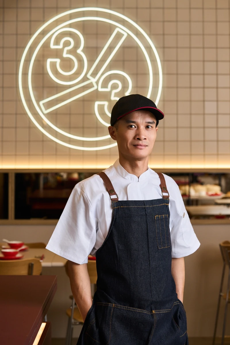 主廚自青少年時期就踏入餐飲圈,累積超過30年的粵式點心經驗。早年於香港餐飲體系學藝,從腸粉、蒸籠、煎炸到包餡、焗烤等點心工序皆完整歷練,奠定紮實基礎。2000年,他曾任職香港利苑集團,並於香港與澳門多家星級酒店及粵菜餐廳擔任點心主廚與顧問。 隨後來臺,先後於臺北「W飯店」與「臺北晶華酒店」晶華軒負責中式點心營運,熟悉港點工藝與在地餐飲環境的結合。2025年加入米其林一星餐廳「T+T」團隊,擔任「三點三 DIM SUM TIME」品牌主廚,專注於現點現做的港式點心製作,從蒸點、燒味到麵食與燉湯,維持穩定工序與風味呈現,回到港點應有的日常樣貌。