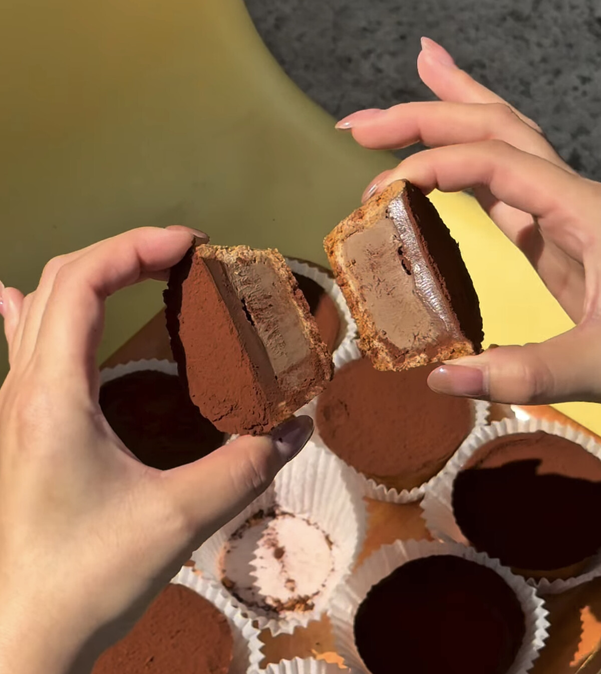 因應粉絲敲碗回歸,店家推出復刻版本的髒髒巧克力蛋塔。內餡使用72%貝里詩巧克力甘納許,最上層灑上cacao barry巧克力粉,整體風味更加濃厚。