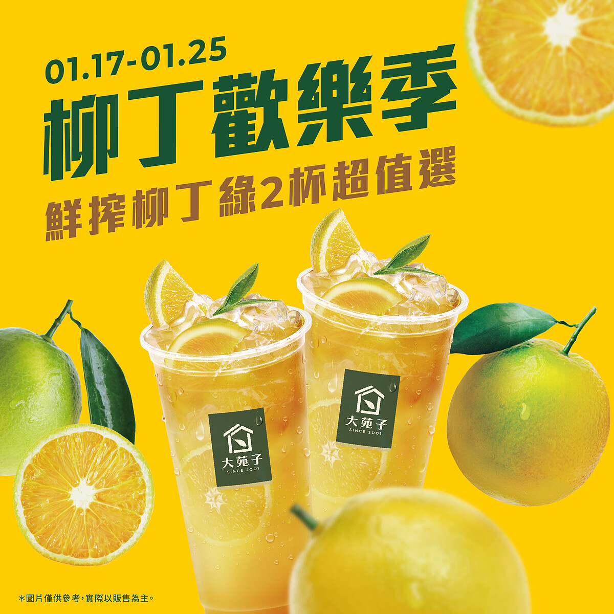 緊接著於1/17至1/25登場的「2026柳丁歡樂祭」,全台門市推出「台灣鮮搾柳丁綠兩杯$119元」優惠組合,選用當季柳丁現榨製作,酸甜清爽、適合全家共享。而自1/22至1/31,大苑子連續10天每天晚間8點,於APP推出指定商品8折券,以限時方式回饋長期支持的手搖控。