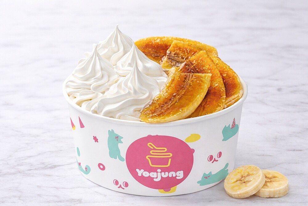 在眾多搭配中,「Yoajung Signature 蜂巢蜜 x 穀物優格冰」被視為品牌代表作,綿密的優格冰搭配天然蜂巢蜜與穀物脆片,口感清爽、層次分明,風味平衡度高,在韓國長期維持高點單率。此款組合也將作為台灣首店的常設販售品項。另一款「烤蕉糖 Yoajung」則以炙烤焦糖香蕉為主角,焦糖化香氣與優格冰的酸香相互平衡,入口香甜卻不厚重,帶有微微脆感,適合偏好甜味層次、想在日常中獲得小小療癒感的冰控。所有優格冰品項皆為店內每日新鮮供應,口味以自然優格風味為主調,年齡層接受度高。
