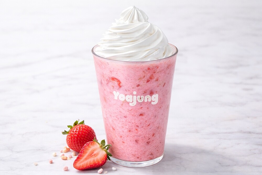 除了優格冰以外,Yoajung台灣首店也同步推出依照在地口味調整的飲品系列,其中主推的「草莓優冰飲」將優格冰與草莓牛奶結合,口感滑順、甜度溫和,呼應近年消費者對輕甜飲品的偏好,也讓優格冰有更多元的享用方式。