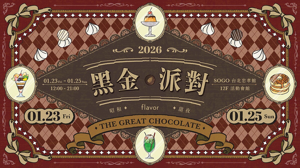 全台最大巧克力節「2026黑金派對」邁入第6屆,將於1月23日至25日在SOGO台北忠孝館盛大登場。今年以「昭和甜夜」為主題,打造充滿日系復古氛圍的「昭和甜點一條街」,結合美國百年經典品牌HERSHEY'S好時與國內外50+頂級可可職人,打造一場橫跨味覺與時代記憶的沉浸式巧克力盛宴。