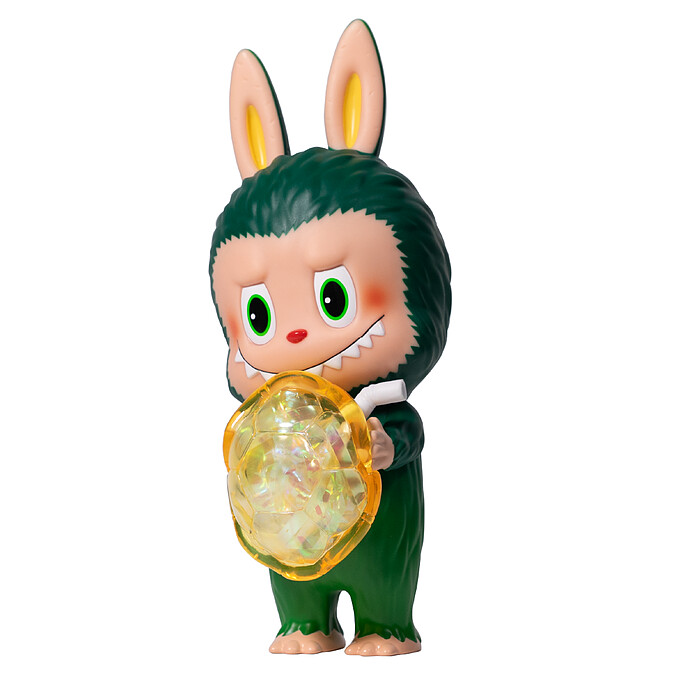 最受矚目的主打商品,Labubu抱著透明龜殼,內部以幻彩雷射質地呈現茶湯光澤,將龜記經典的琥珀色茶飲轉化為精湛的工藝設計。