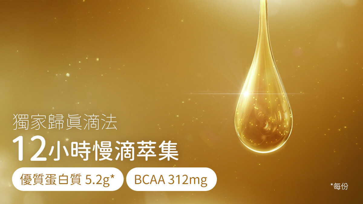 每份含有5.2g優質蛋白質 、 312 mg BCAA支鏈胺基酸與天然膠原蛋白,補充體力、修復精力,營養活力一次到位!