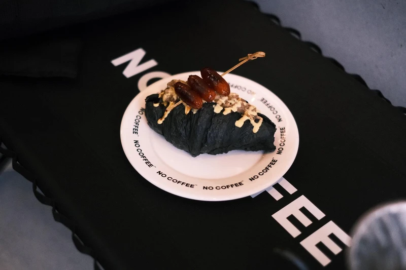 配合NO CAMPING主題,NO COFFEE同步推出限定餐點「BBQ煙燻風味香腸可頌」,以帶有核桃木煙燻香氣的BBQ醬為基底,拌入洋蔥丁與荳蔻、茴香、黑胡椒、大蒜調味的絞肉,搭配炙烤台式香腸與濃郁起司醬,包裹進酥脆可頌中。鹹香、煙燻與奶香層層堆疊,像是把露營早午餐直接搬進城市午後。喜歡吃鹹食的小編真的超級愛這一次的聯名可頌,味道很足夠又不會死鹹,錯過真的會後悔。