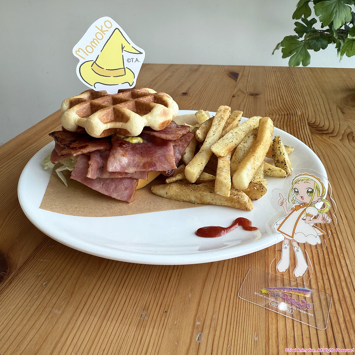 以香煎培根、濃郁起司、格子鬆餅與酥脆薯條組成甜鹹交錯的美式風味。