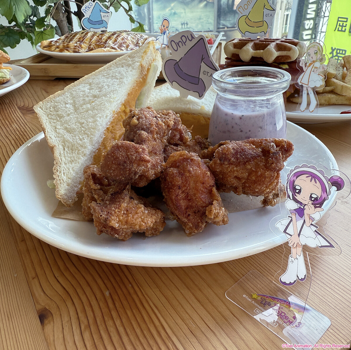 三明治以綿密地瓜泥搭配唐揚炸雞及藍莓優格,是忙碌偶像音符快速補充能量的活力餐點。
