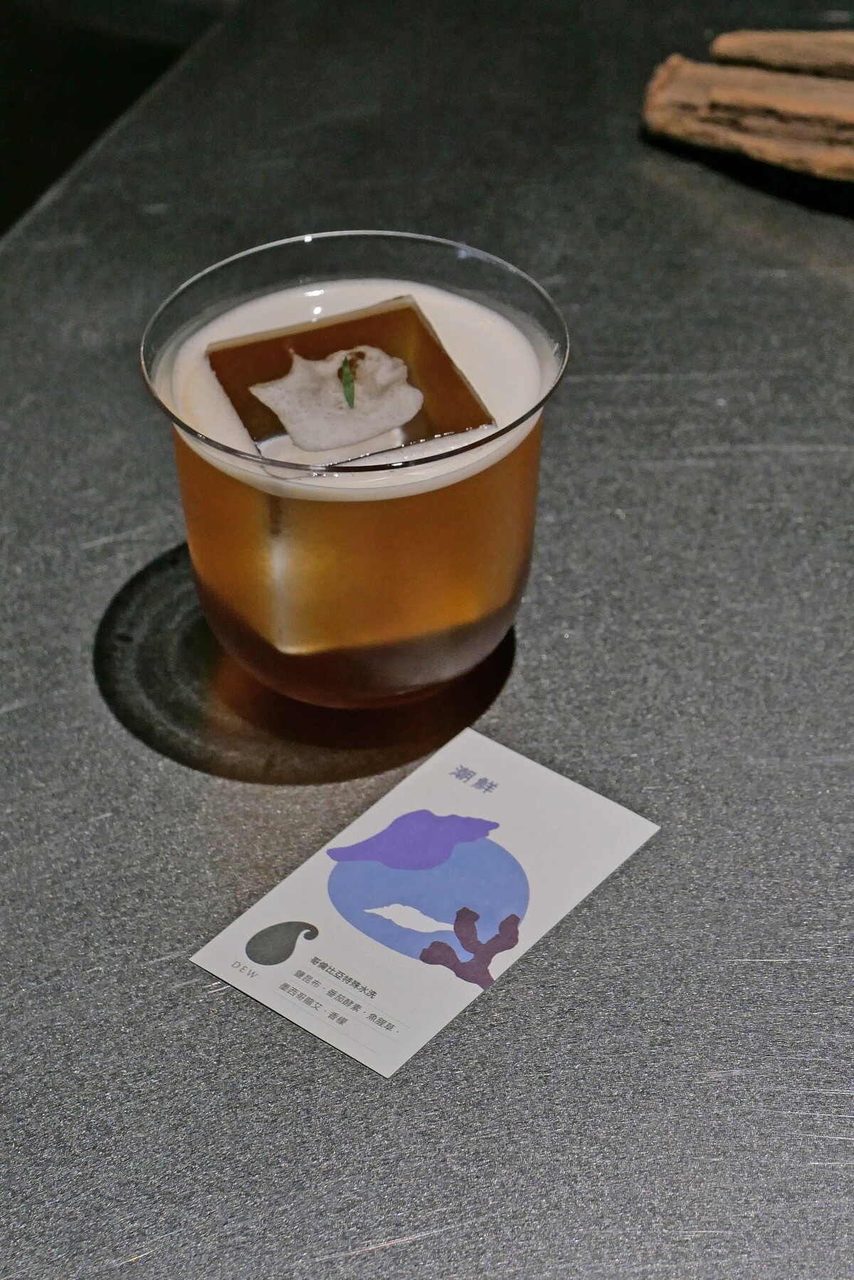 調飲由過去曾在「Sinasera 24」工作、而後長居台東與花蓮「雙濱」地區(豐濱與長濱)的工作夥伴林子睿設計,他將跟隨原民文化職人採集野豬、溪邊烤肉這些深入部落、親近山海的經驗,作為「Dew」的味覺基礎把其風味轉譯,將海洋風情、山林煙燻、以及部落食材,濃縮進每一杯咖啡特調中。