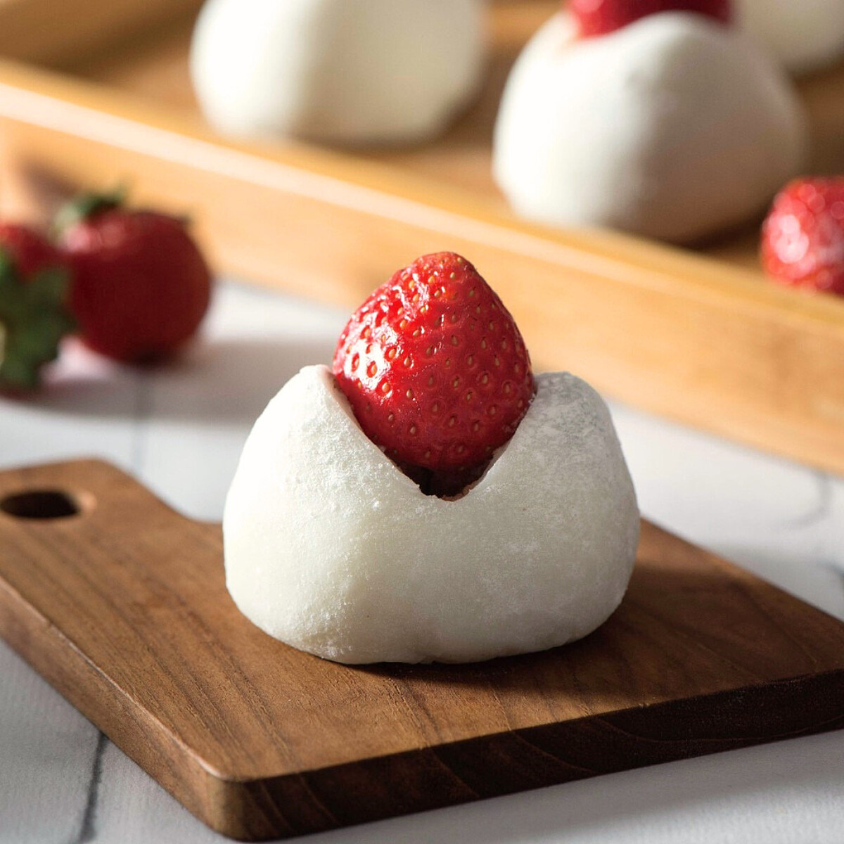 日式經典大福的柔軟麻糬皮與整顆鮮甜大湖草莓融合,擁有新年一切圓滿之寓意,傳統紅豆泥的綿密香甜與草莓恰到好處的酸在舌尖化開,是圍爐後的最佳收尾甜點。