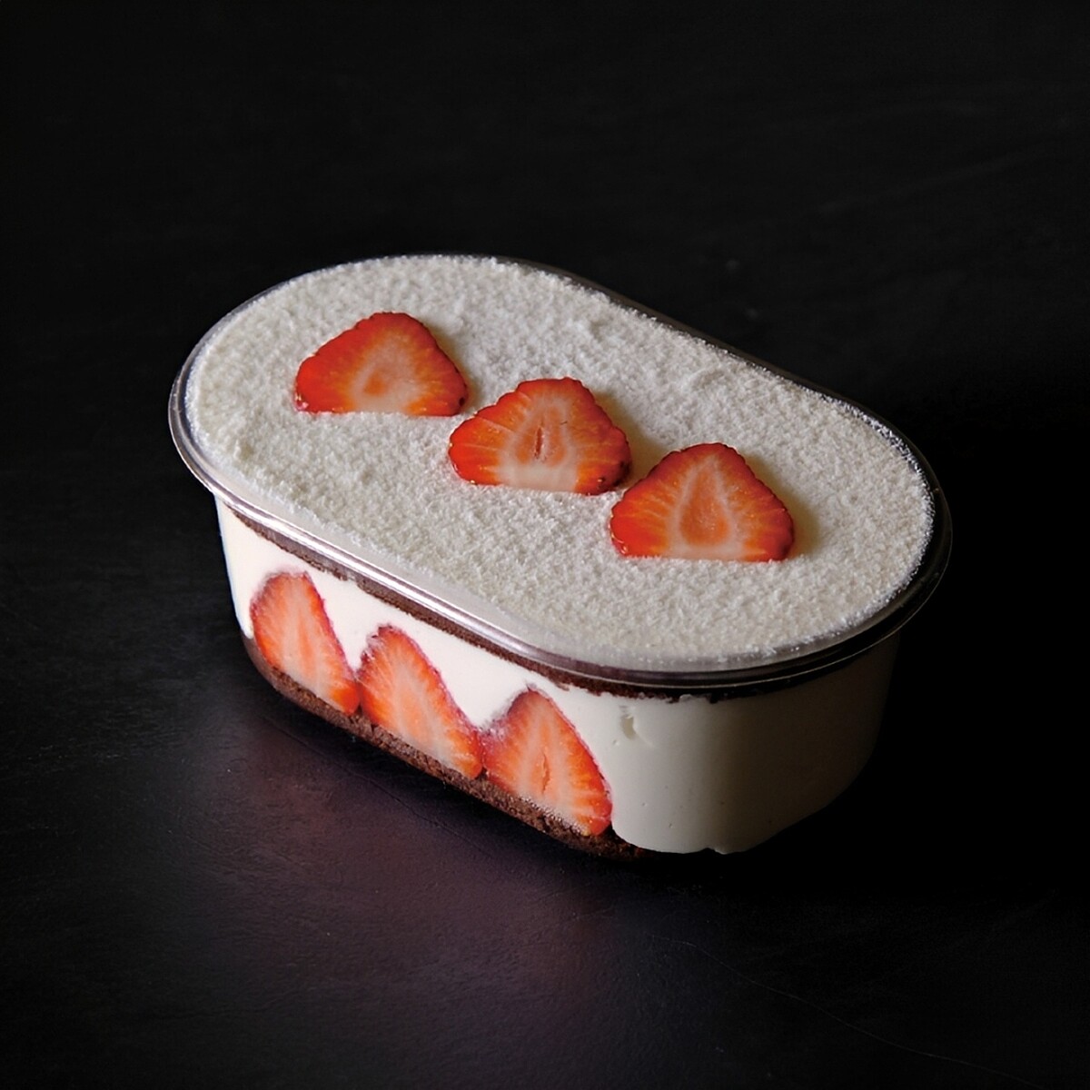 此款甜點嚴選比利時 70% 巧克力製成濃郁可可鮮奶油,疊加上鬆軟戚風蛋糕與冬季新鮮草莓,苦甜巧克力與酸甜果香完美交織,搭配香滑卡士達醬,口感紮實且甜而不膩。