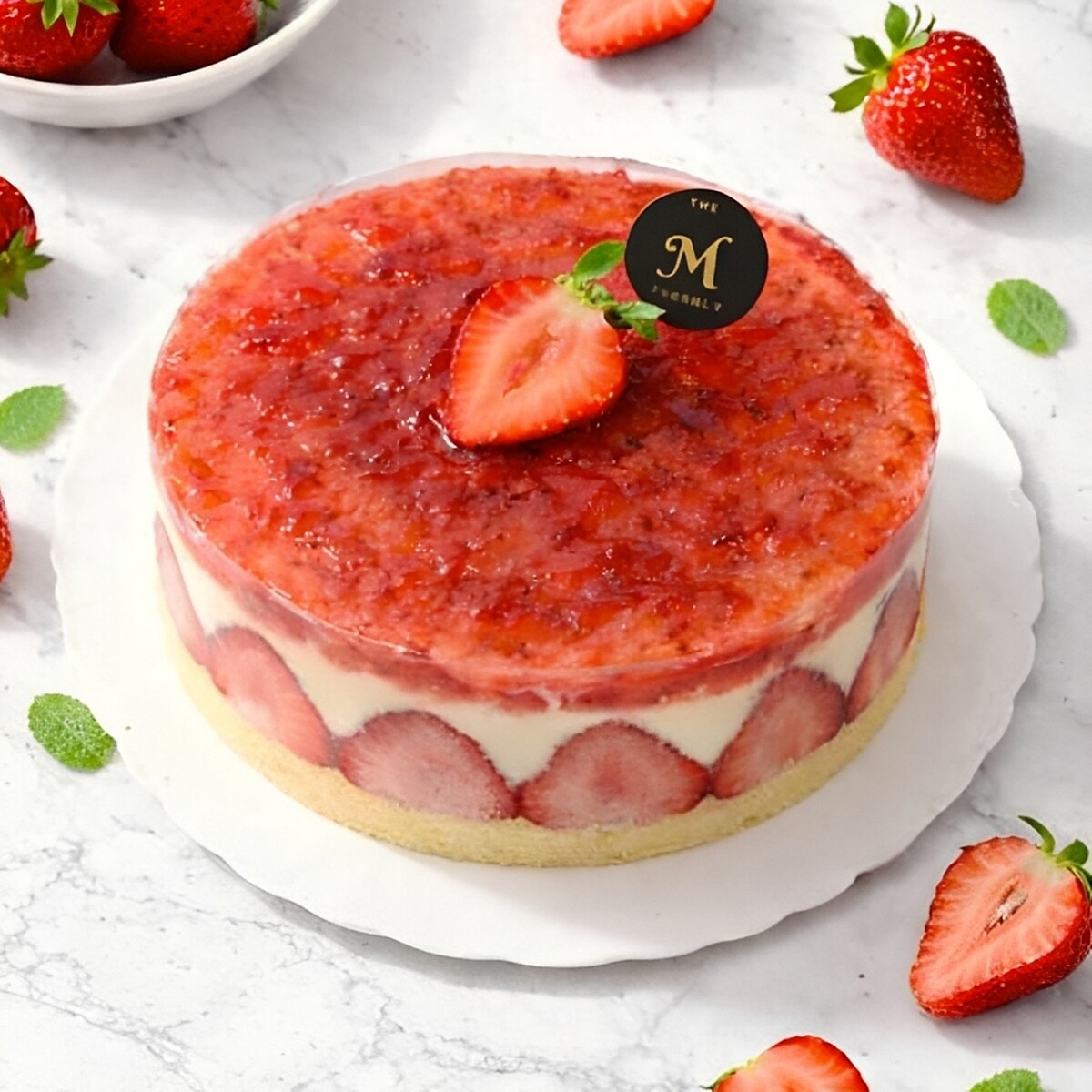 高質感的法式奶油與整齊排列的草莓切面,展現細膩工法與結構美學,層次清晰、甜度適中,每口都能嚐到職人對比例的堅持,非常適合在佳節時分端上桌。