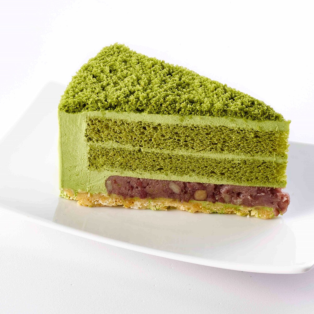 嚴選日本靜岡抹茶粉製成,表層灑上抹茶碎屑,打造春日綠意草皮感。蛋糕體夾層中有綿密紅豆泥,底部酥脆,多重口感製造味蕾驚喜!售價95元。
