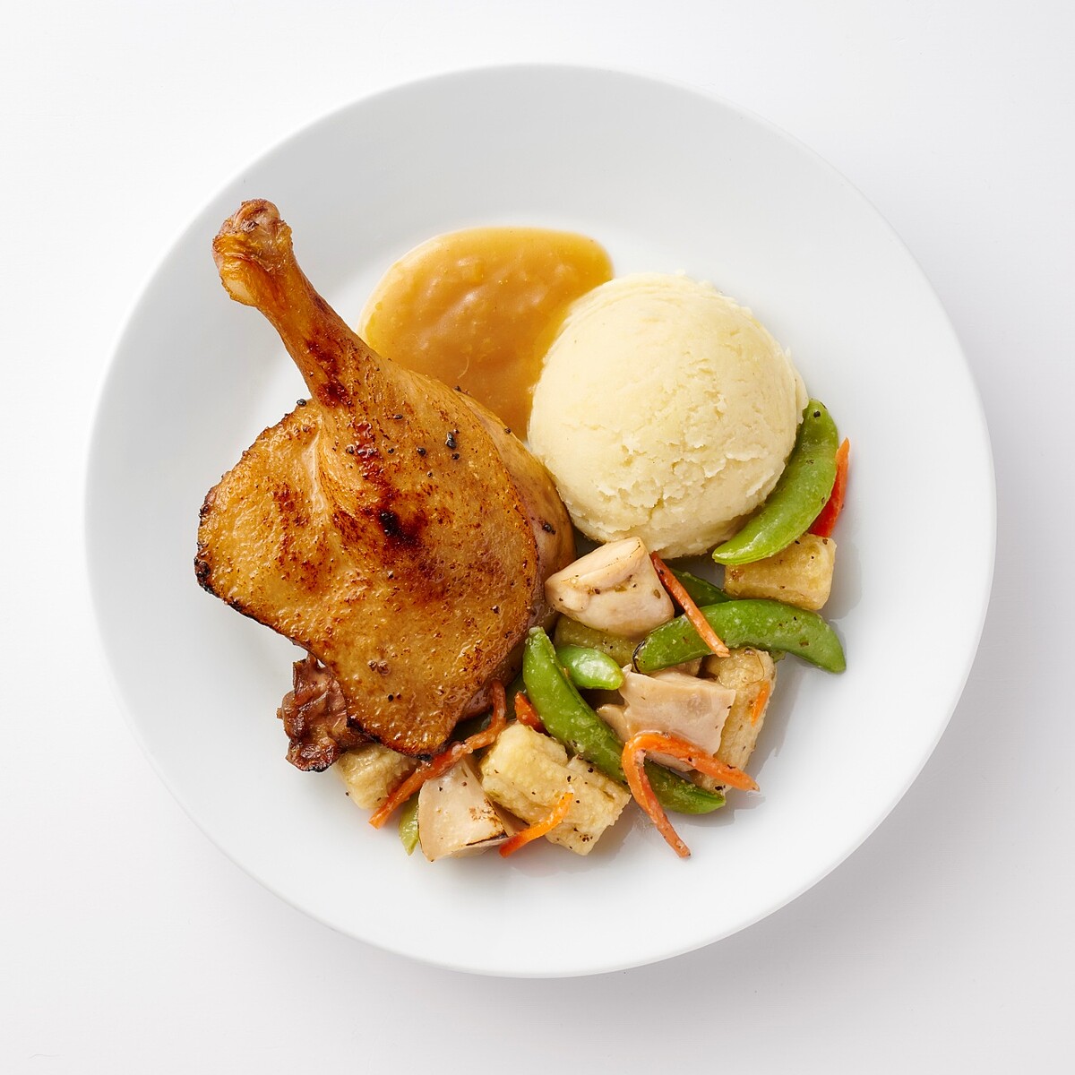 採用油封方式預製鴨腿,再高溫烘烤至外皮酥脆、內裡多汁,搭配以橙汁和柳橙果肉調製的酸甜柑橘醬,平衡鴨肉的濃郁。並佐以溫烤杏鮑菇、玉米筍、甜豌豆與紅蘿蔔等蔬菜,是道清爽不膩口的美味主餐。售價369元、4/1-4/30卡友優惠價299元。