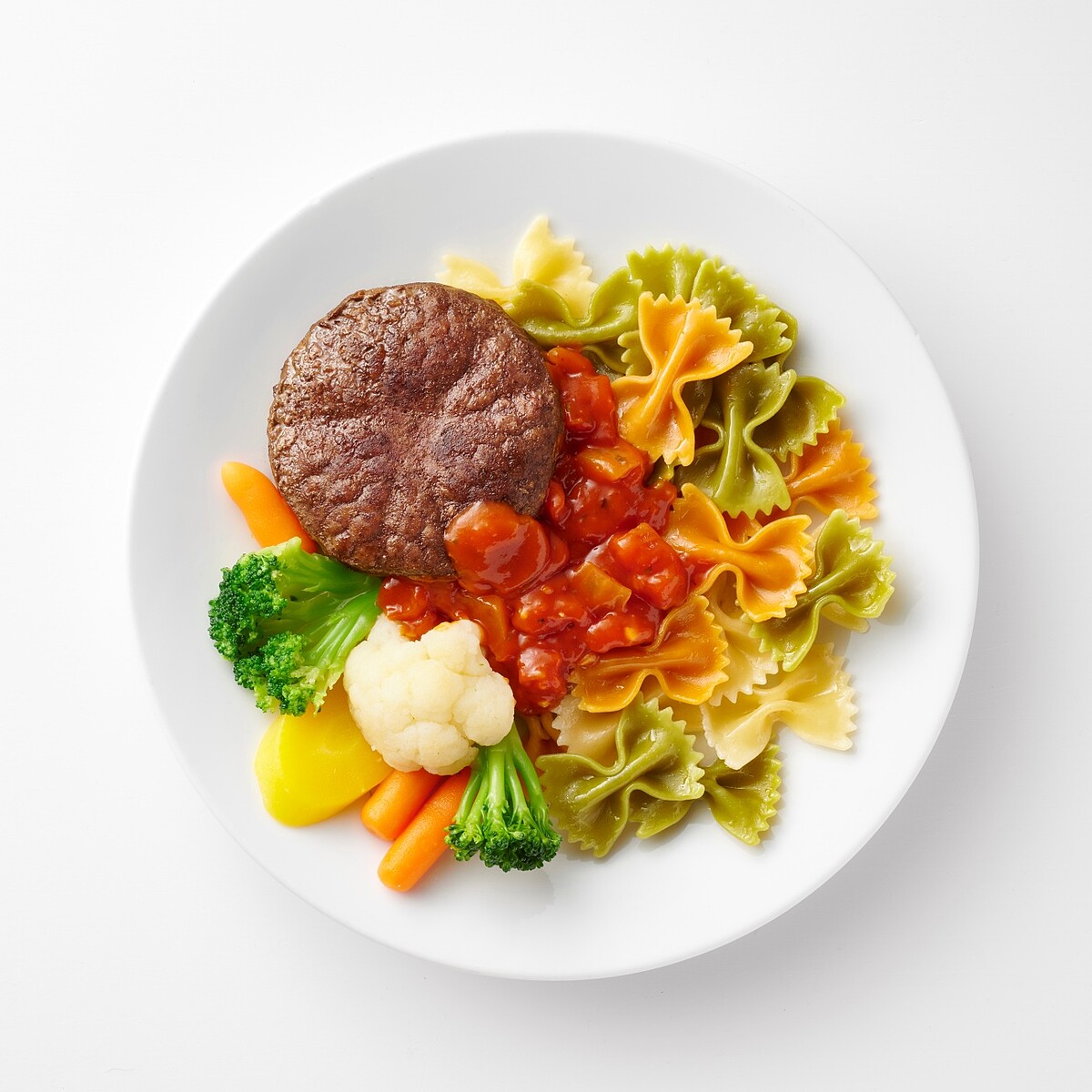 漢堡排以高溫烘烤鎖住肉汁,內部柔嫩多汁,肉香紮實不油膩,搭配拌入白胡椒、肉桂、紅辣椒等香料調配的番茄紅醬,味道酸甜、香氣豐富,與Q彈的蝴蝶麵相互融合,每一口都能吃到肉香、醬汁與麵體的滿足口感。售價229元。