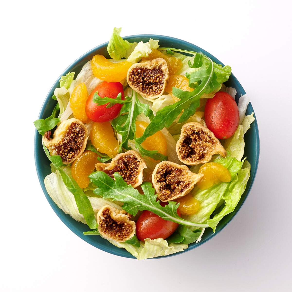 以清脆爽口的綜合生菜與芝麻葉為基底,並首度使用香甜柔軟的無花果乾入菜。搭配酸甜多汁的橘瓣與小番茄,最後再淋上紅酒醋醬,為春日增添一抹清新感。售價149元。