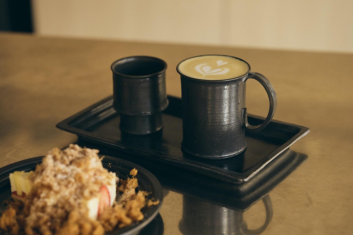 空間由築房數位Architchen操刀,將1960年代日式街屋轉化為流動的空間載體。設計團隊保留原有建築輪廓,以參數化設計與CNC加工打造曲面吧台,並透過可全開折門打開街道與室內的邊界。器皿則由ErnstMemorialHall訂製系列,以近似鐵器的漆黑質地呼應整體色調,觸感與重量成為品飲的一部分。