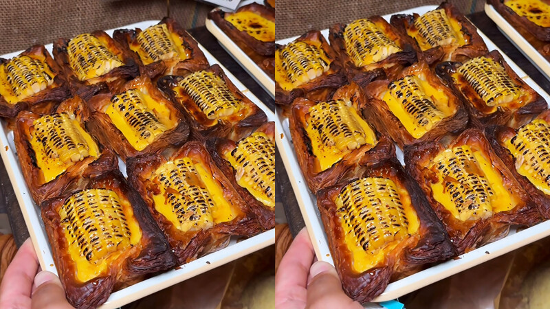 創意十足的「炙烤玉米可頌蛋塔」將整片炙烤過的鮮甜玉米鋪在香甜蛋塔內餡上,甜鹹交織、口感豐富,被看好成為本次排隊亮點。