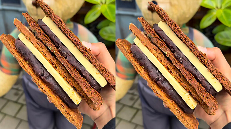 「酥脆扁可頌」將可頌壓製烘烤至薄脆口感,香脆如餅乾,這種口感令人欲罷不能。有紅豆奶油、香濃可可兩種口味可以選擇
