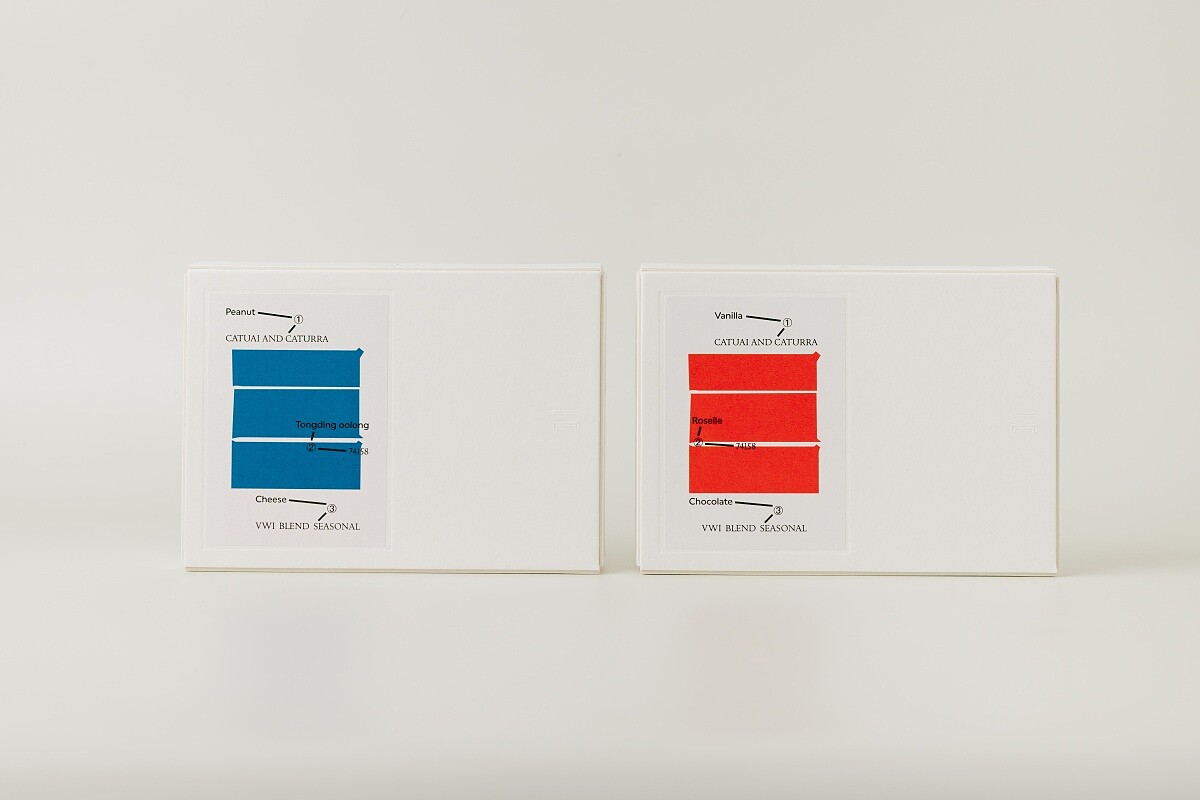 以黑巧克力鋪陳礦物般深邃基底,洛神花帶出寶石般的酸值,香草則提供溫暖甜感,形成甜酸苦交錯的垂直層次,如同花園在四季間的轉換。搭配 VWI 黑標 Blend Seasonal,杏仁與焦糖底韻穩定甜感,細緻柑橘酸質拉出清晰線條。