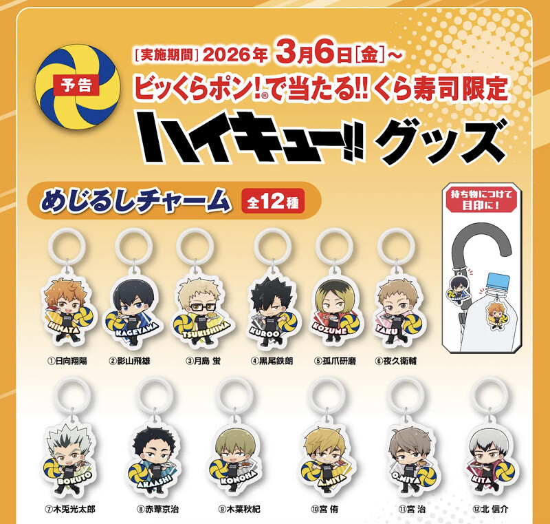 日本連鎖迴轉壽司品牌くら寿司(藏壽司)宣布與人氣動畫《排球少年!!》展開聯名合作,將於3月6日至3月31日於日本全國門市登場,活動還推出四大高校主題餐點、滿額贈限定資料夾與壽司盤,扭蛋小物也都全面換上排球少年角色,消息一出,粉絲立刻暴動直呼:「機票訂好了!」