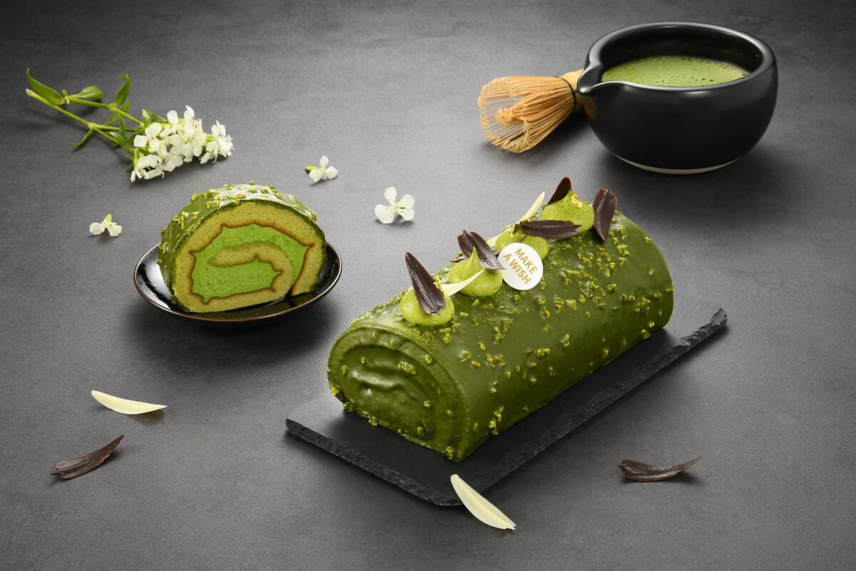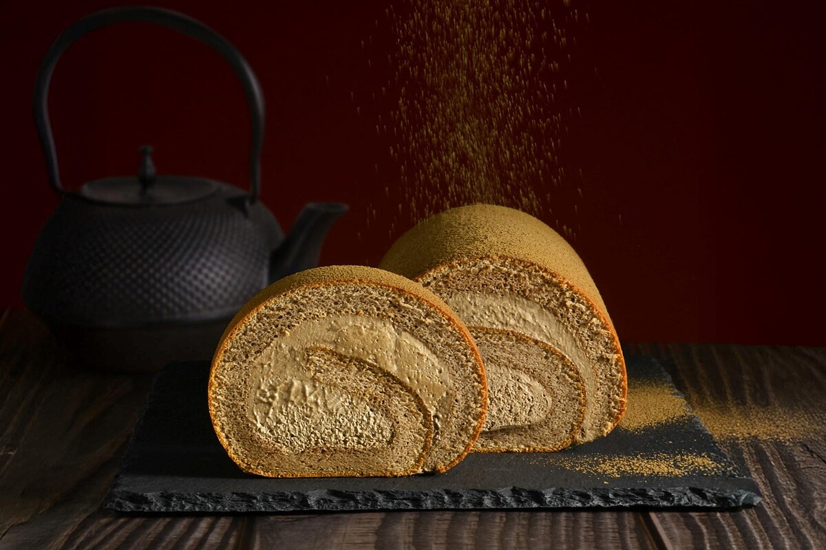 這一次系列也以三種不同甜點技法呈現茶香特色,「極濃宇治焙茶生乳捲」主打濃度升級,使用100%宇治一番茶焙茶粉,茶量增加至1.5倍。焙茶在低溫焙製後帶出烘烤香氣,入口溫潤厚實,尾韻綿長。「宇治抹茶脆皮巧克力生乳捲」則以比利時白巧克力包覆泡芙蛋糕,外層形成脆皮口感,再搭配抹茶奶霜與巧克力片裝飾,甜點造型精緻華麗。另一款「雪天使抹茶生乳捲」透過師傅手工拉花,打造如大理石紋般的山水紋理。蛋糕帶有淡淡米香,搭配宇治抹茶奶霜,整體口感輕柔而清爽。