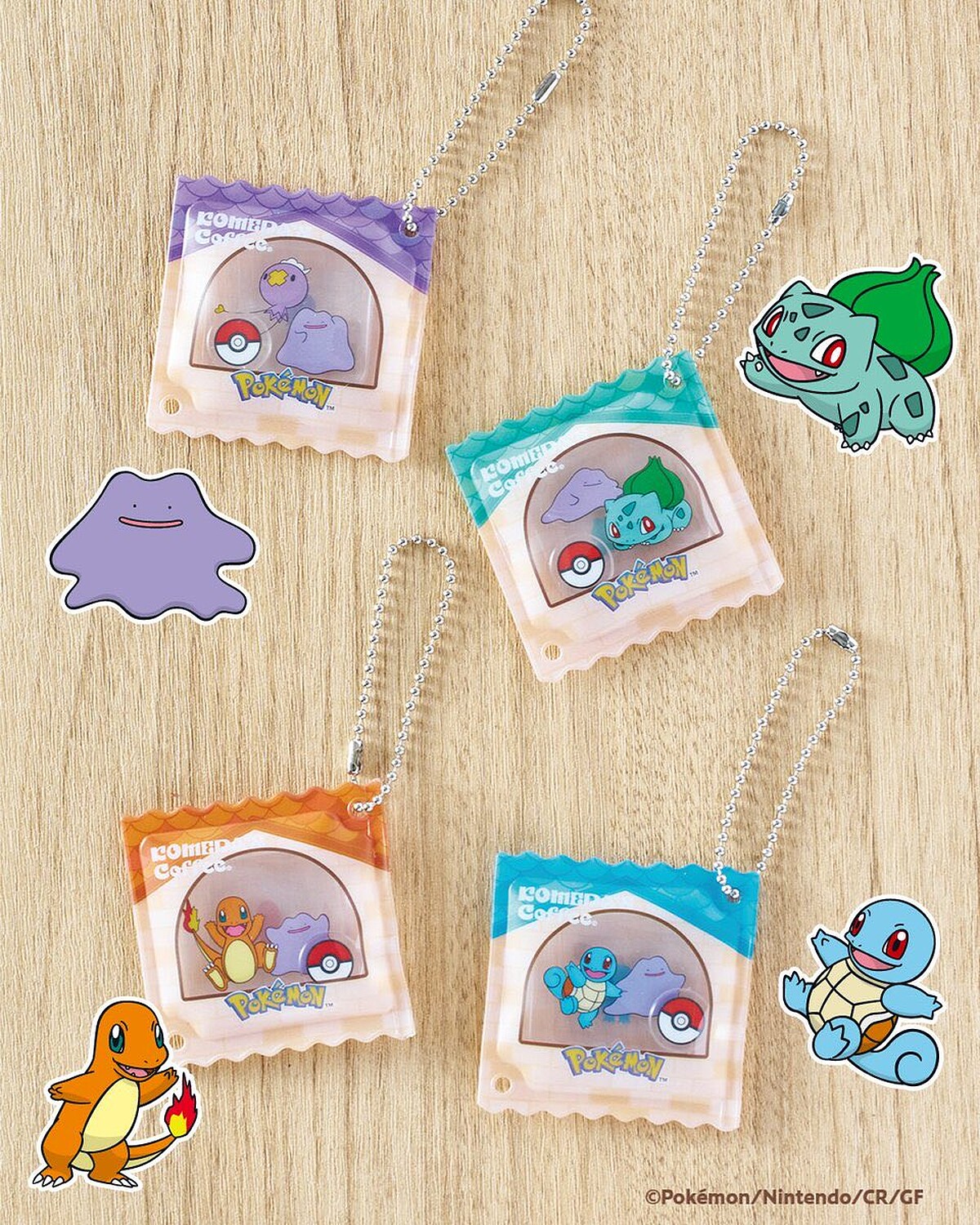 豆菓子風吊飾(百變怪+飄飄球/妙蛙種子/小火龍/傑尼龜),點購以上任一款餐點,即可獲得一個客美多經典豆菓子造型的聯名吊飾,共有4種款式隨機發送。