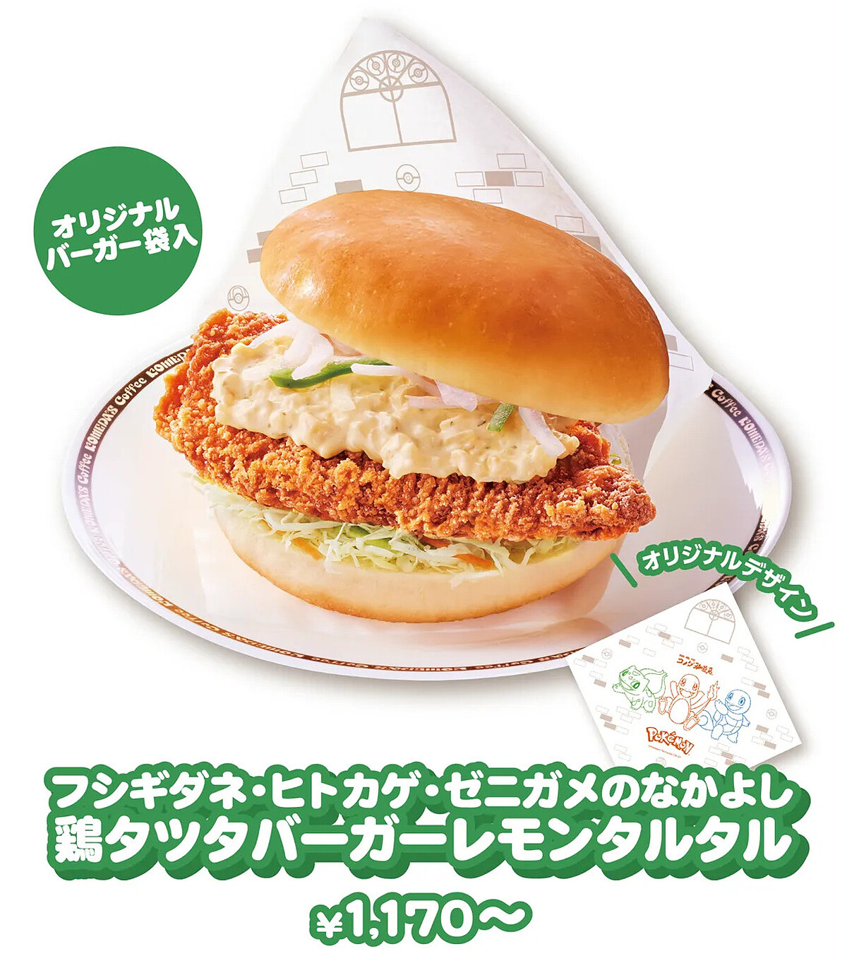 香酥炸雞排搭配清爽檸檬塔塔醬,外包裝還印有妙蛙種子、小火龍與傑尼龜的經典圖樣,可愛度滿分。