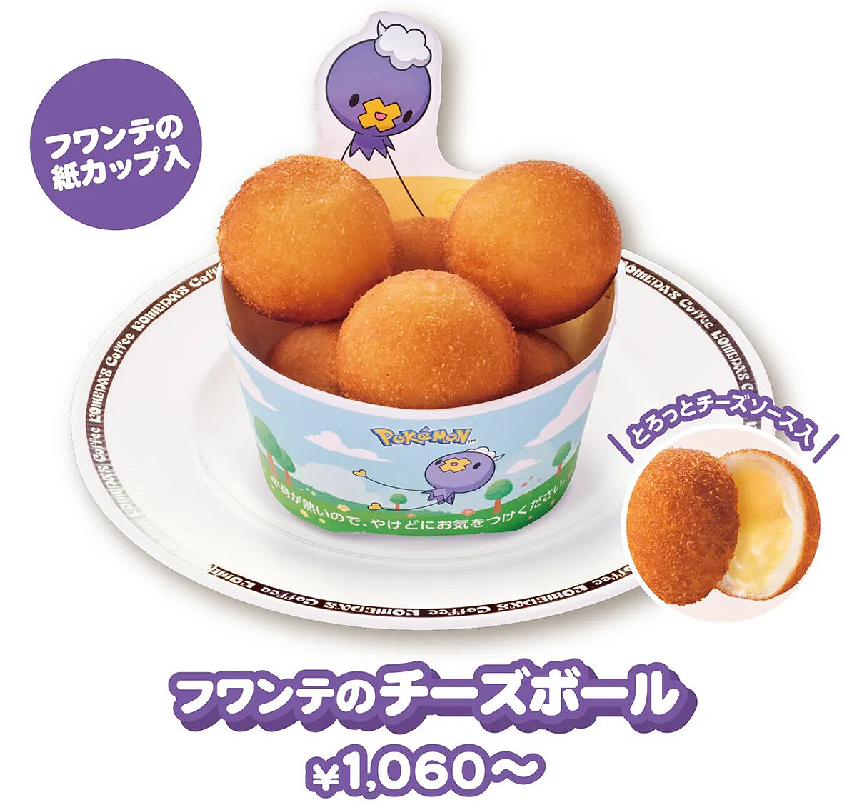 以《寶可夢》角色「飄飄球」為靈感設計的小點心,一口咬下爆出濃郁起司內餡,搭配印有飄飄球元素的專屬紙碗,造型與口味都相當吸睛。