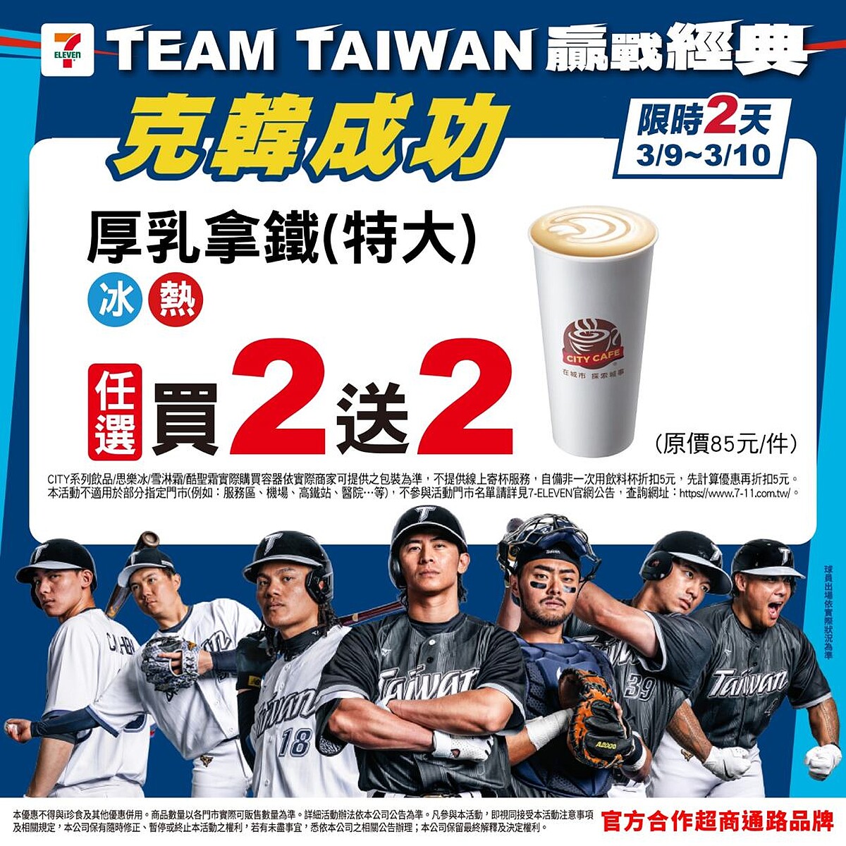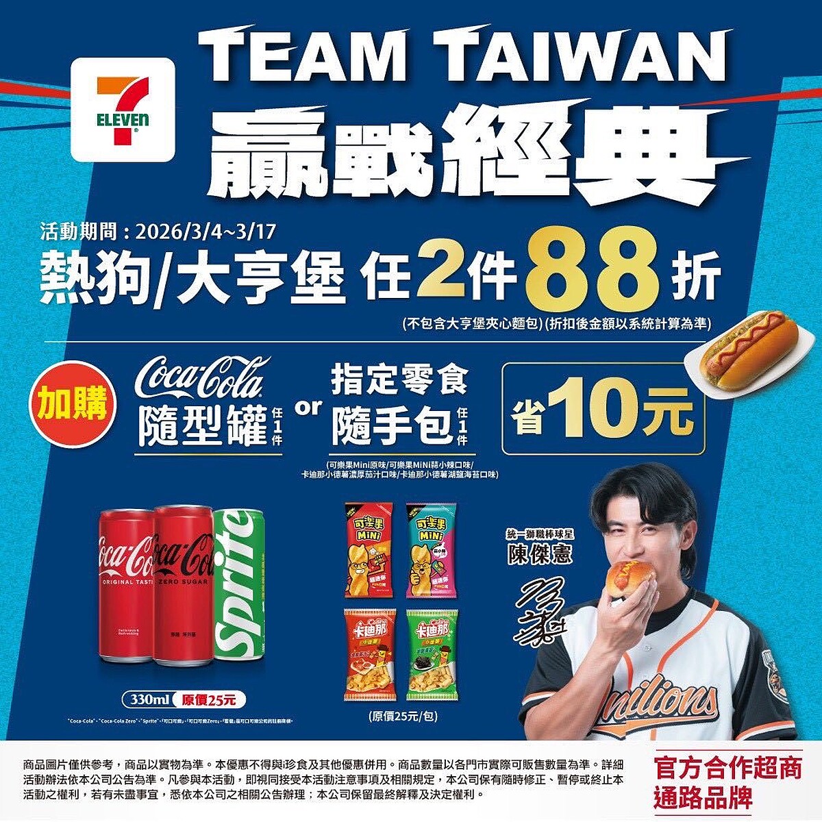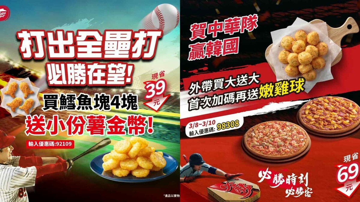 Team Taiwan在WBC擊敗韓國,多家超商、速食與餐飲品牌紛紛推出限時優惠,包括咖啡買2送2、炸雞蛋撻優惠桶、披薩應援套餐等,號召全民一邊追賽、一邊用美食為中華隊喝采。