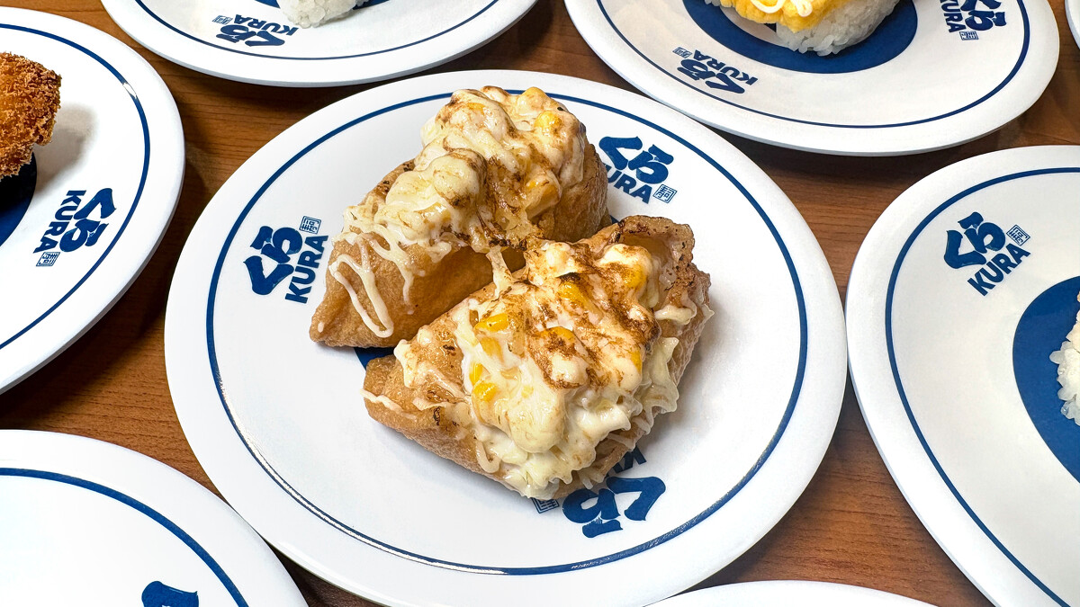 稻荷包裹香甜玉米沙拉,上層融化起司炙烤微焦,外酥內軟,鹹香與甜味完美融合。