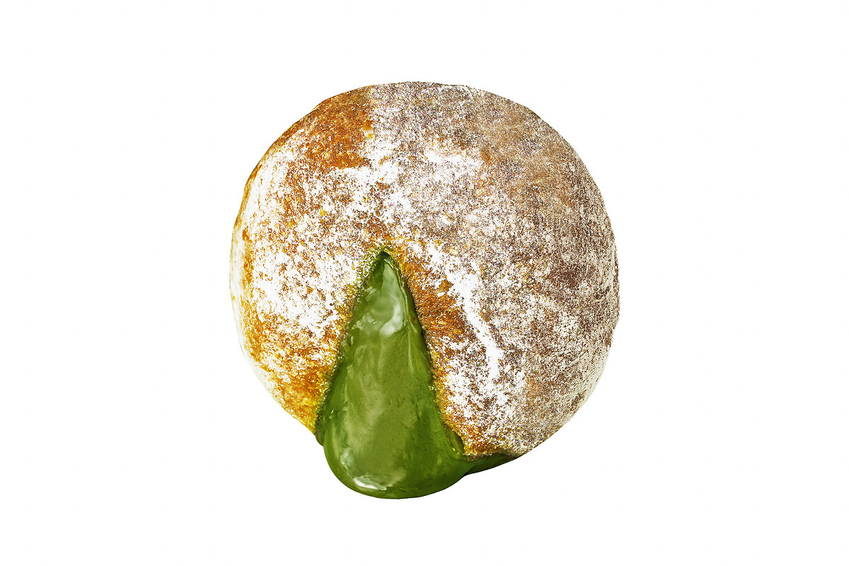 延續生甜甜圈系列的人氣,這一次推出的「靜岡抹茶生甜甜圈」選用日本靜岡抹茶粉製作內餡。相較於偏甜的傳統甜甜圈,這款新品刻意呈現抹茶微苦回甘的層次,搭配現炸外皮的酥香與內餡的濃郁滑順,整體風味更貼近大人系口味。視覺上淡雅的抹茶綠色澤也讓甜點多了幾分清新氣質,無論搭配熱紅茶或熱咖啡都是適合早晨提神的組合。