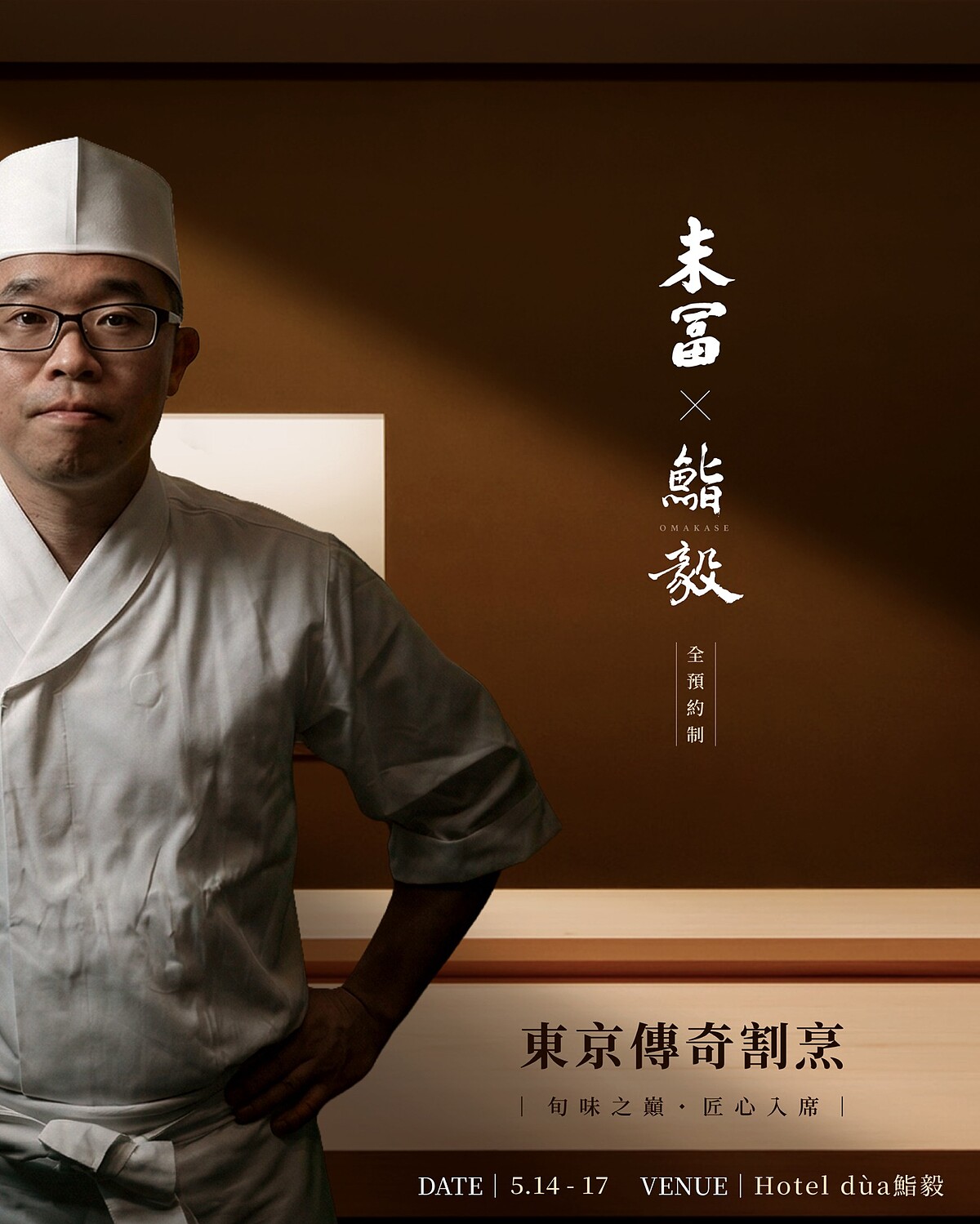 「末冨」是一間位在東京澀谷,純會員制、不對外開放訂位的割烹餐廳。僅靠口耳相傳、長年在行家口耳相傳中累積聲望,低調卻具分量。今年5月,主廚末冨康雄親自飛抵台灣,與高雄Hotel dùa 旗下日料餐廳「鮨毅」攜手合作,推出期間限定聯名餐會,將在5/14~17四日舉辦,並分成午、晚兩場,每席售價NT28,000+10%。