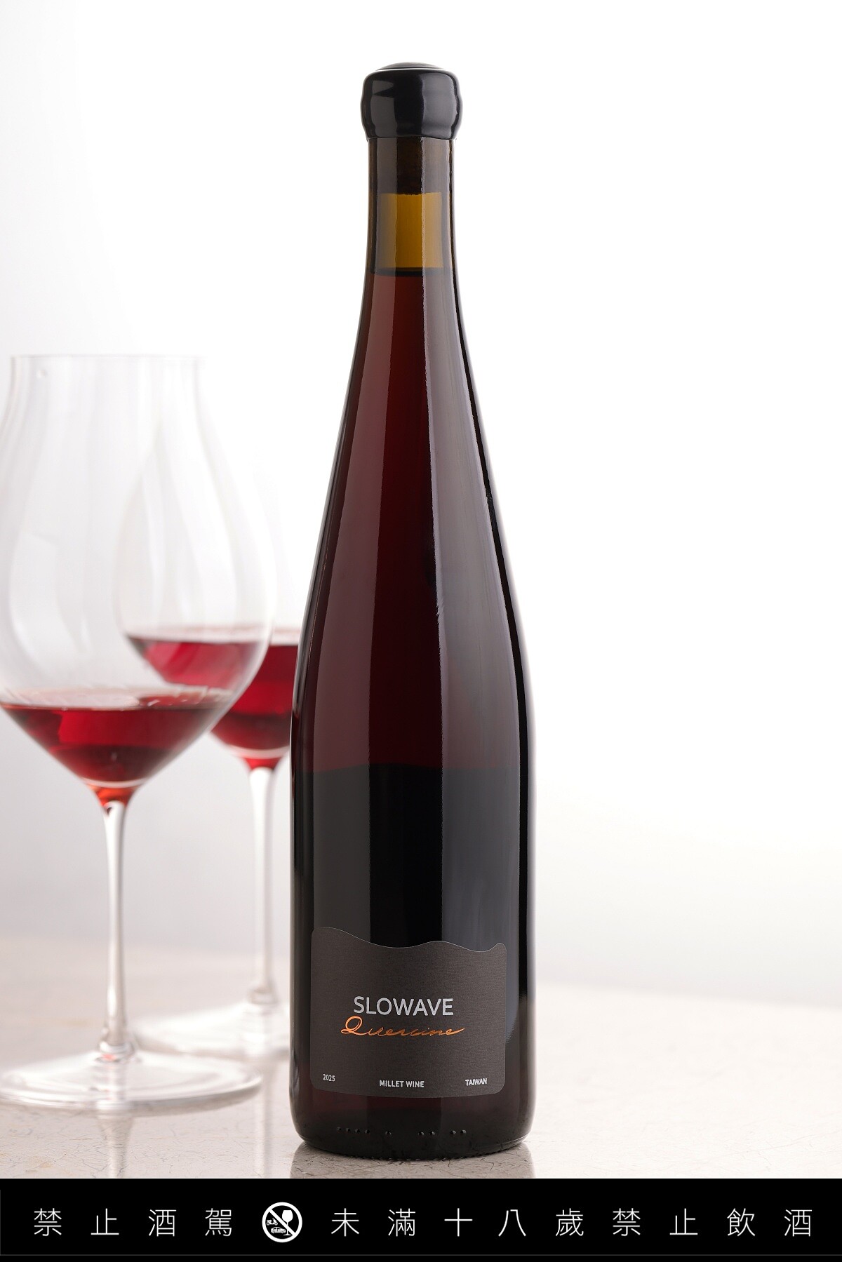 結合⿊后葡萄的深⾊果實風味, 與⼩米發酵所帶來的溫潤基底,展現成熟⽽內斂的風格。 香氣中除了⿊莓與李⼦的果實調性,亦可感受到類似李鹹蜜餞的鹹甜氣息,如同午後陽光下晾曬的果實,帶著臺灣記憶中的熟成味道。入⼝輪廓淸楚,酸度與單寧輕柔卻有存在感,較低的酒精度讓整體表現更顯淸爽。餘韻留下成熟果實與穀物交織的穩定感。 適合稍微回溫後飮⽤,