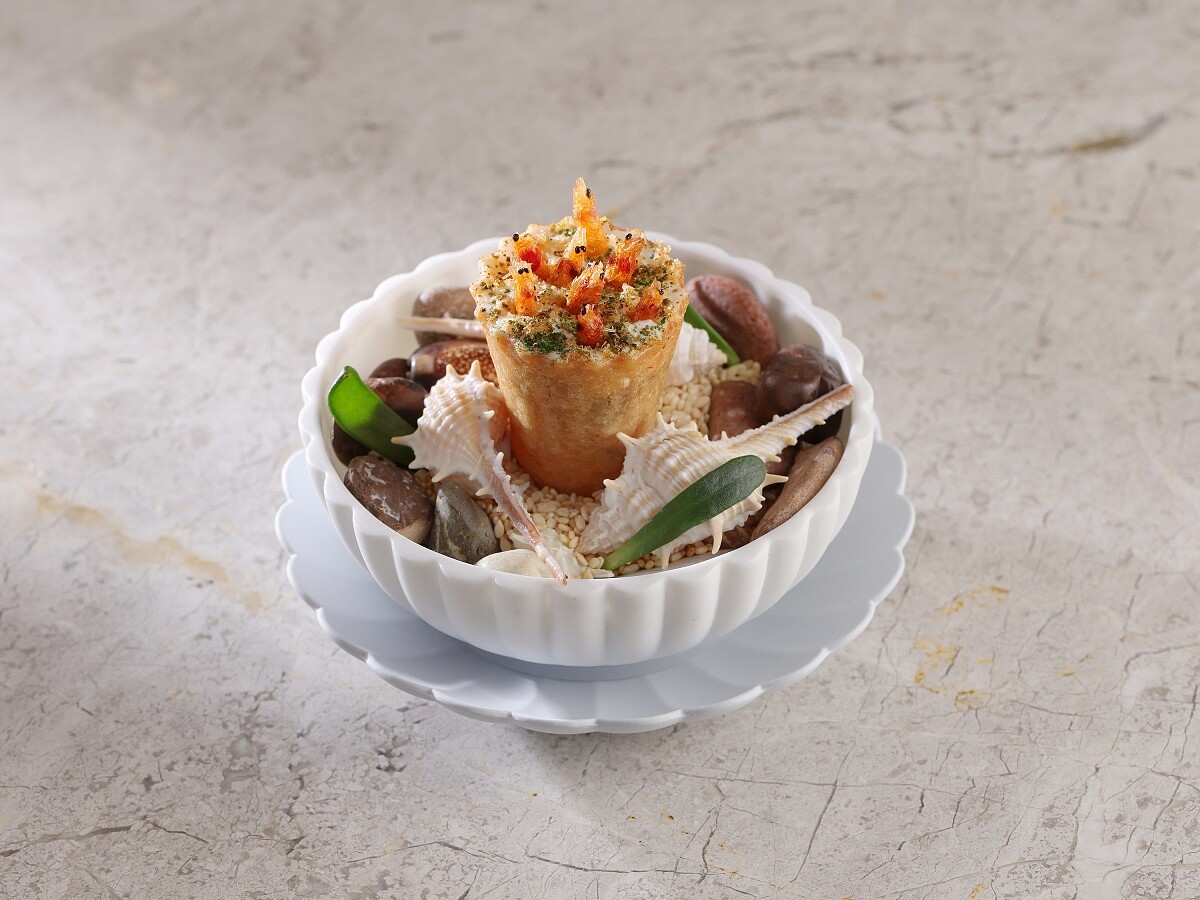 在「蒔光漫流:風土粟酒」餐酒計畫中,料理更像是為粟酒建立味覺舞台。整體菜單設計並非傳統 Fine Dining 常見的「料理為主、酒為輔」,而是先從三款粟酒的風味出發,再安排料理的節奏與層次。主廚蔡中和先分析酒體的酸度、穀物香氣與質地,再思考什麼樣的料理能讓這些特質被看見。
