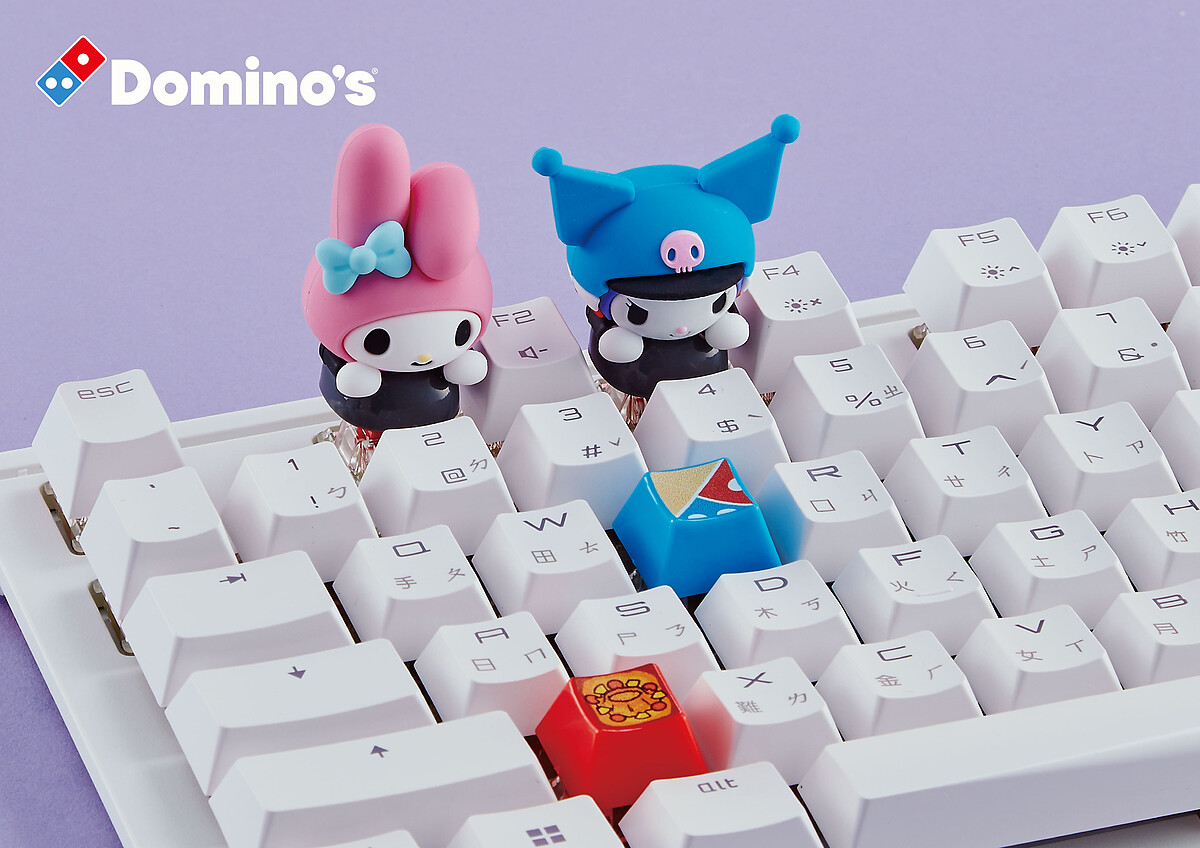 本次聯名活動最大的亮點莫過於兩款造型極具巧思的「萌力滿點鍵帽盲盒」,美樂蒂延續先前的職人設定,化身專業披薩大師,搭配達美樂人氣「火山披薩」圖樣鍵帽,展現專業又可愛的鋒芒。而新加入的酷洛米則戴上達美樂專屬外送安全帽,手捧經典披薩盒,展現甜酷又療癒的可愛魅力。這款聯名鍵帽不僅可直接安裝於機械式鍵盤上,壓下按鍵還會發出光芒,為辦公室生活增添趣味。除此之外,也能掛在包包上隨身賣萌,日常生活中的療癒軟萌魅力值隨時都能點滿。