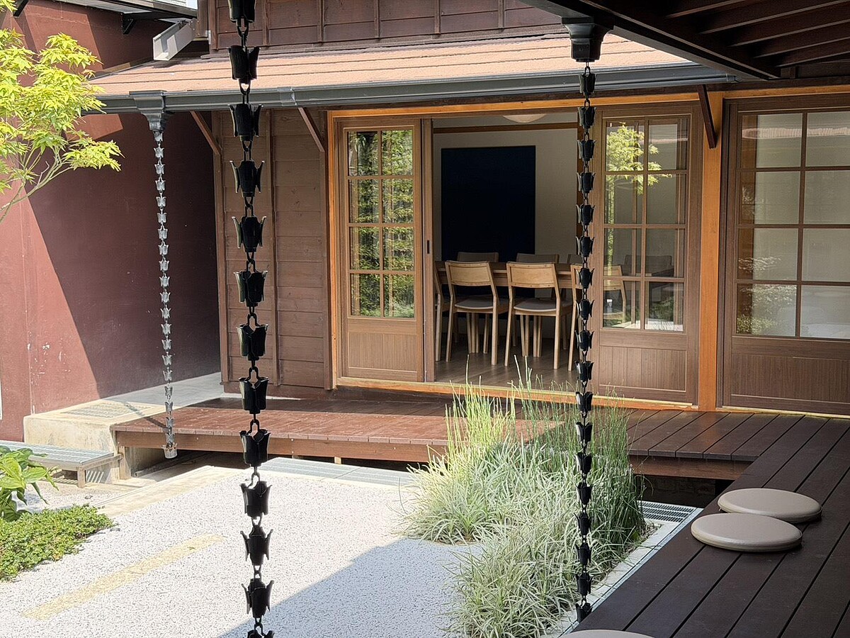 大安旗艦店落腳於「光在錦町」園區,這裡原本是1930年代的日式官舍群,也是台北少數保存完整的歷史建築聚落。空間設計刻意收斂,保留黑瓦、雨淋板、架高地板與紙門等原始結構,讓歷史痕跡自然存在。木質、淺色牆面與通透格柵,搭配日光流動,整體氛圍安靜而柔和。店內也融入永續概念,例如以咖啡渣再製的家具,讓材料本身延續另一段生命。