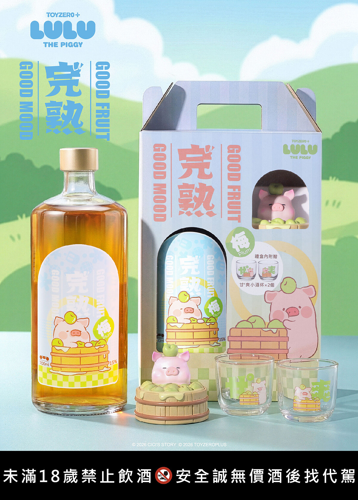 視覺設計上,官方特別為此合作案繪製全新的「梅酒主題」視覺。罐頭豬LuLu與青梅共舞的清新風格,賦予酒款不同以往的可愛萌感,無論是專業品飲或是居家擺飾,都能展現出獨特的收藏魅力。