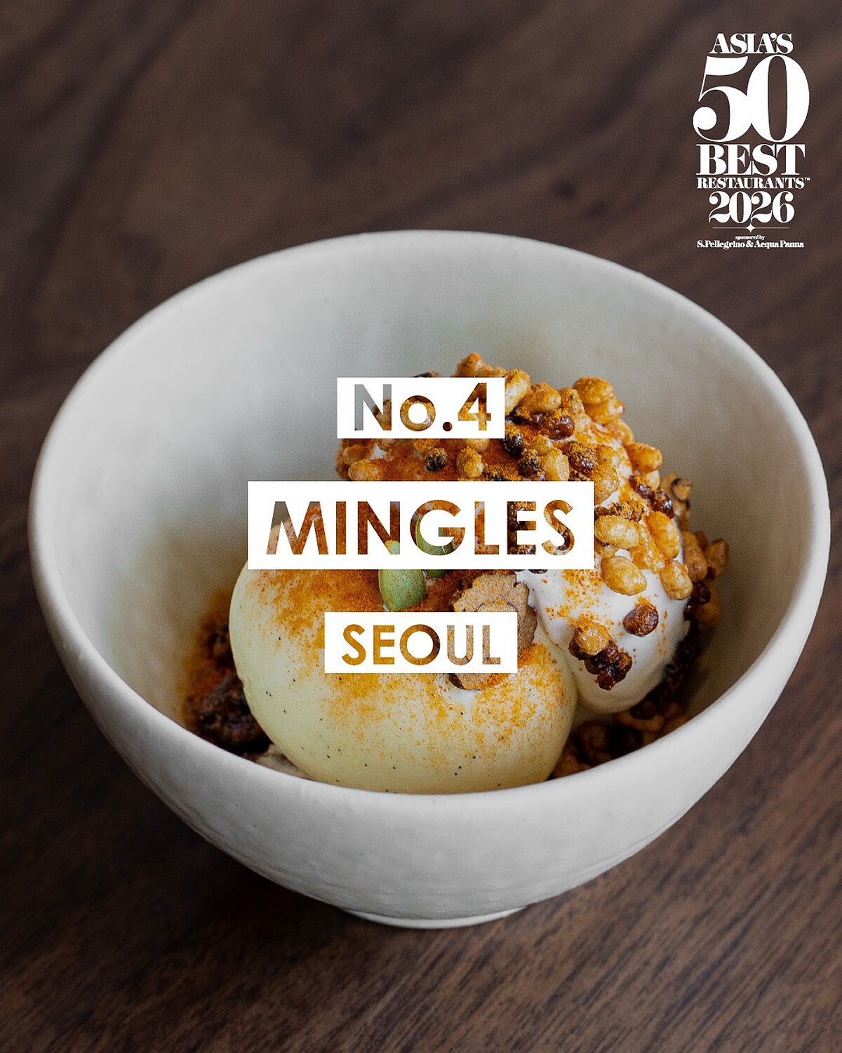 隨著影視軟實力,韓國餐飲文化獲得全球關注,首爾在本屆也有所斬獲。「Mingles」以亞洲第四名蟬聯韓國最佳餐廳,其他入榜餐廳包括 Eatanic Garden(No.26),由曾參與料理節目《黑白大廚》、《拜託了冰箱》的主廚孫鍾元(Son Jong-won)掌舵;以及《黑白大廚》評審 Sung Anh 主理的餐廳「Mosu」(No.41)。因為節目播出後,相關主廚與餐廳的能見度、討論度也提升,讓榜單中的首爾餐廳受到更多關注。